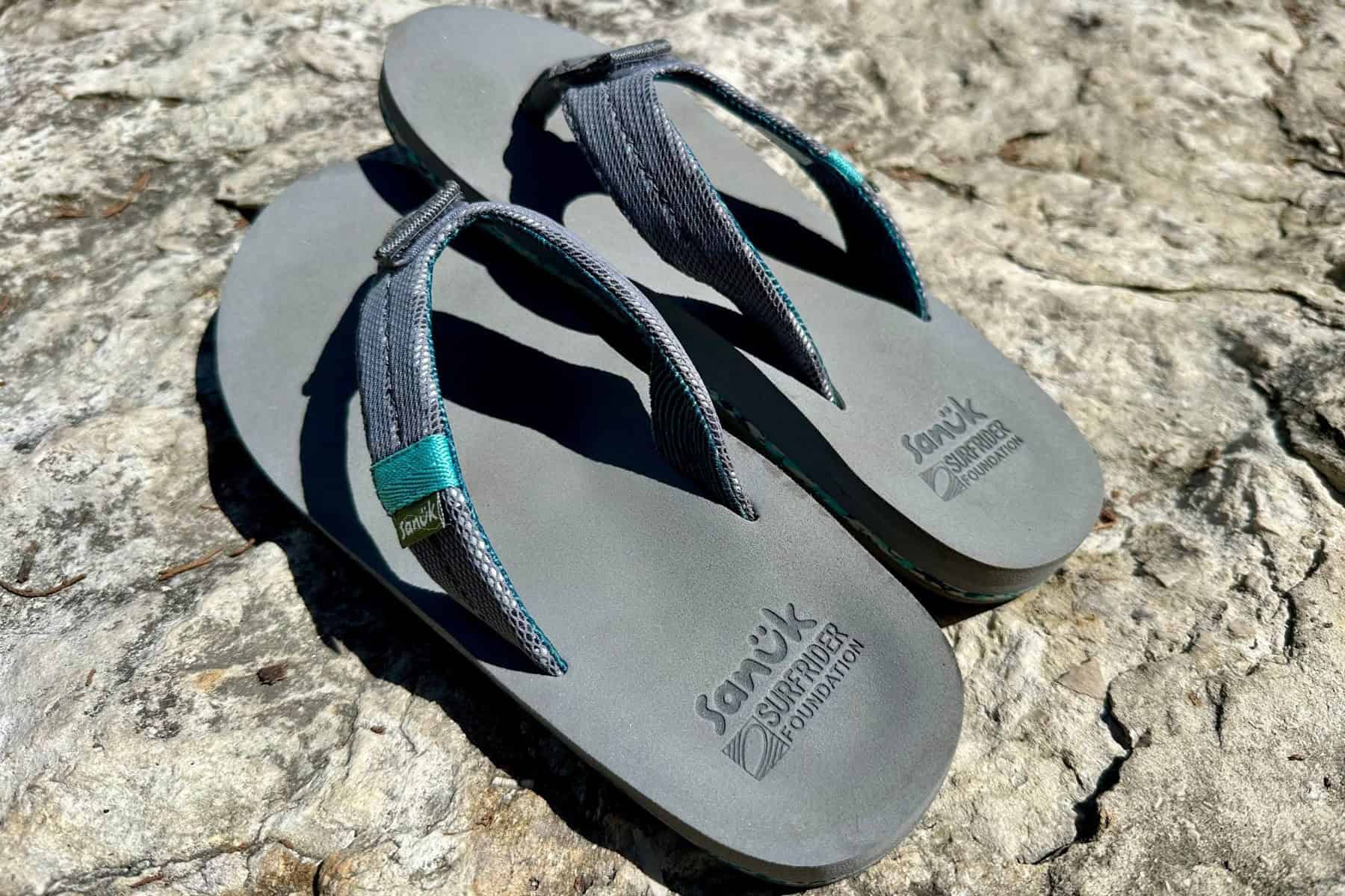 The Sanük Switchfit X Surfrider Flip-Flops are part of Sanük’s partnership with Surfrider to raise and donate 50,000 in 2024 to fight for clean water and healthy beaches. Purchasing these specific flip flops for men and women will contribute to this goal.