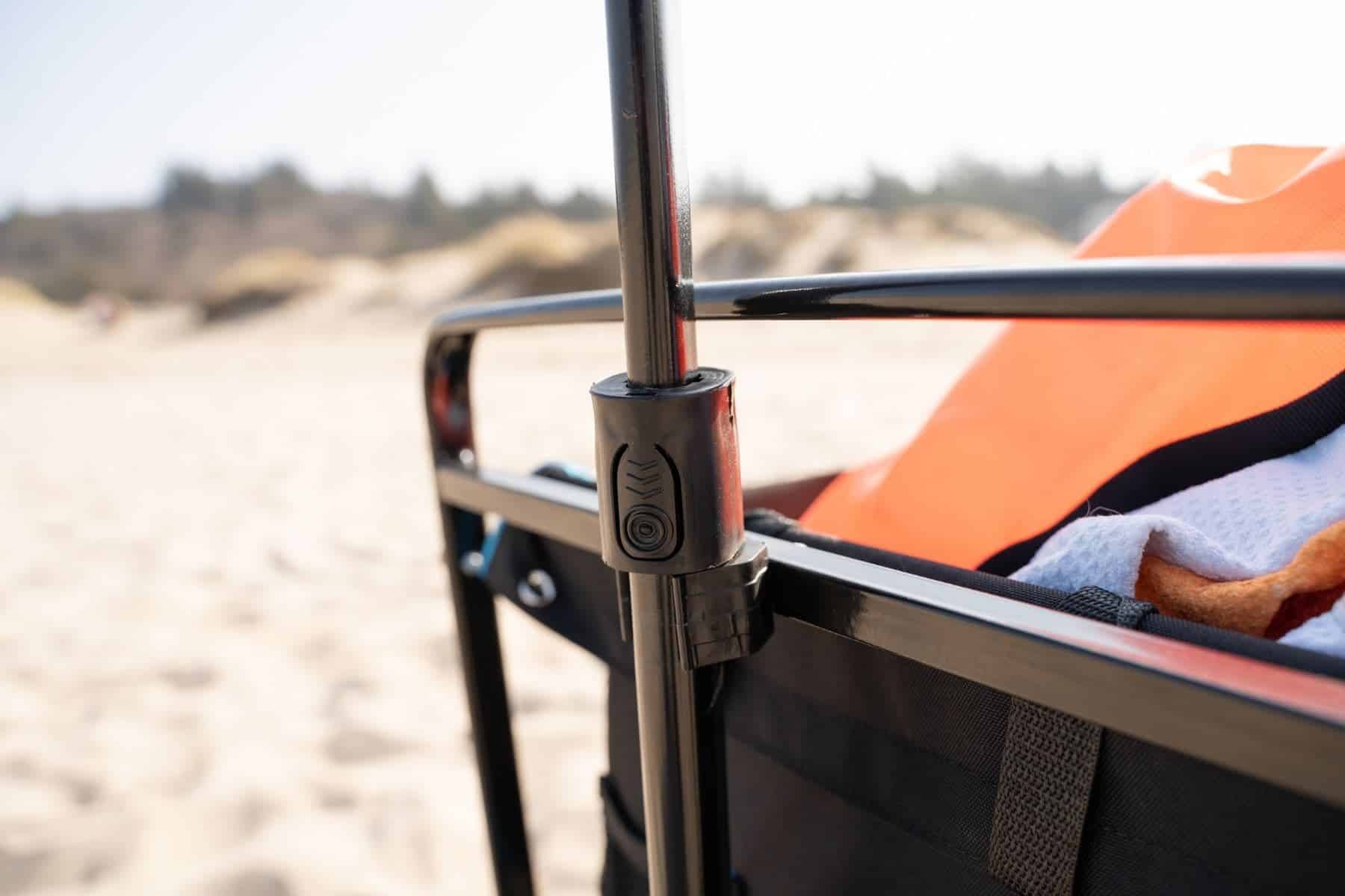 Additional storage space for small beach essentials, such as sunscreen, chargers, and books, is also available. With the dedicated cup holders, this wagon also lets you bring your drinking bottles and other refreshments in one go.