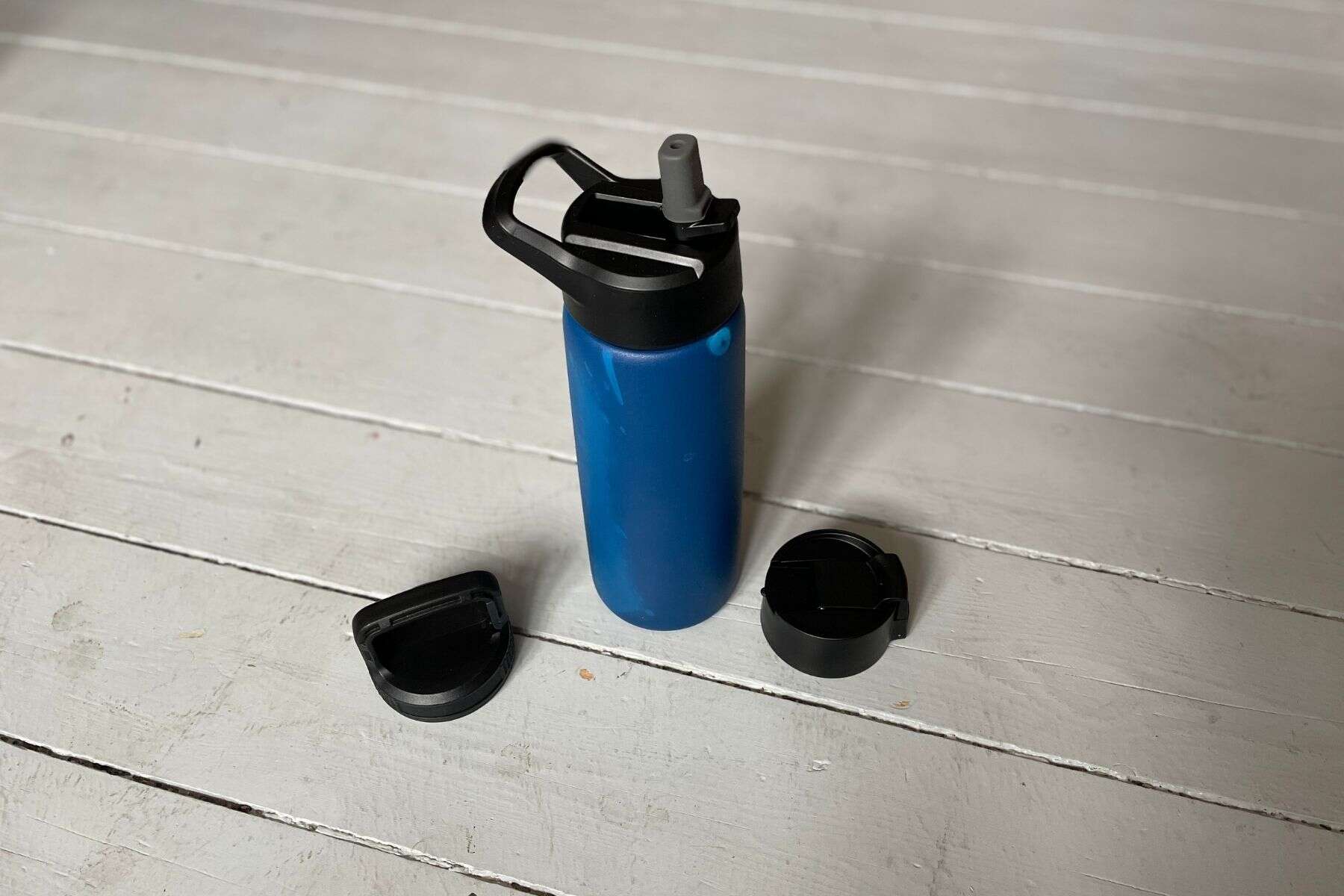 But for what it is, it’s perfectly decent water bottle with lids for different occasions or purposes. The hook lid is great for lashing to hiking backpacks, while the straw lid and coffee sipper top is a nice pair of options for roadtrips.
