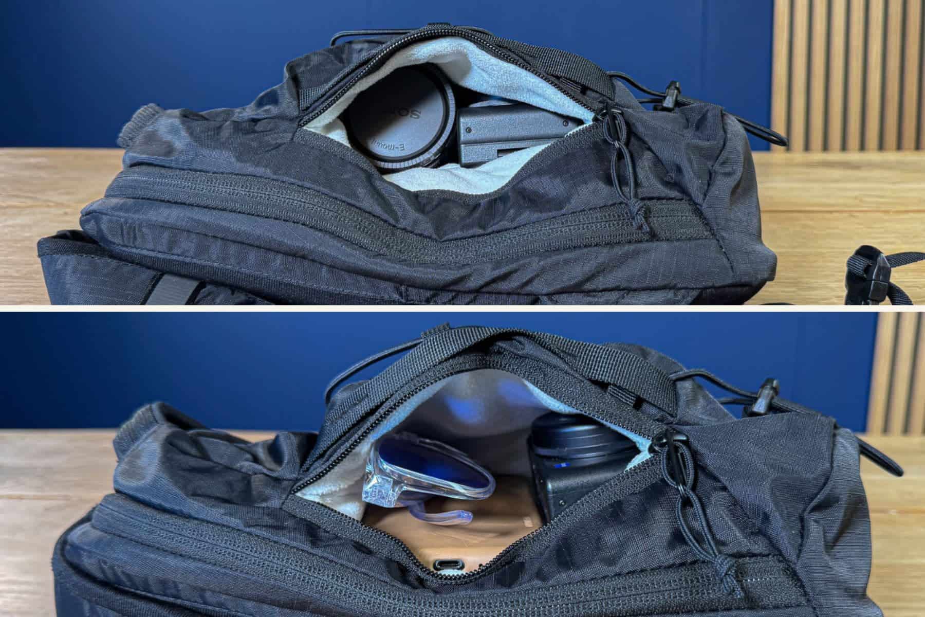 The same as the Patagonia Black Hole 8L sling, the strap is anchored to the bottom left. When the bag is on your front, the zips can be opened with each hand. However, the strap isn’t ambidextrous and I understand that can be a deal breaker for some.
