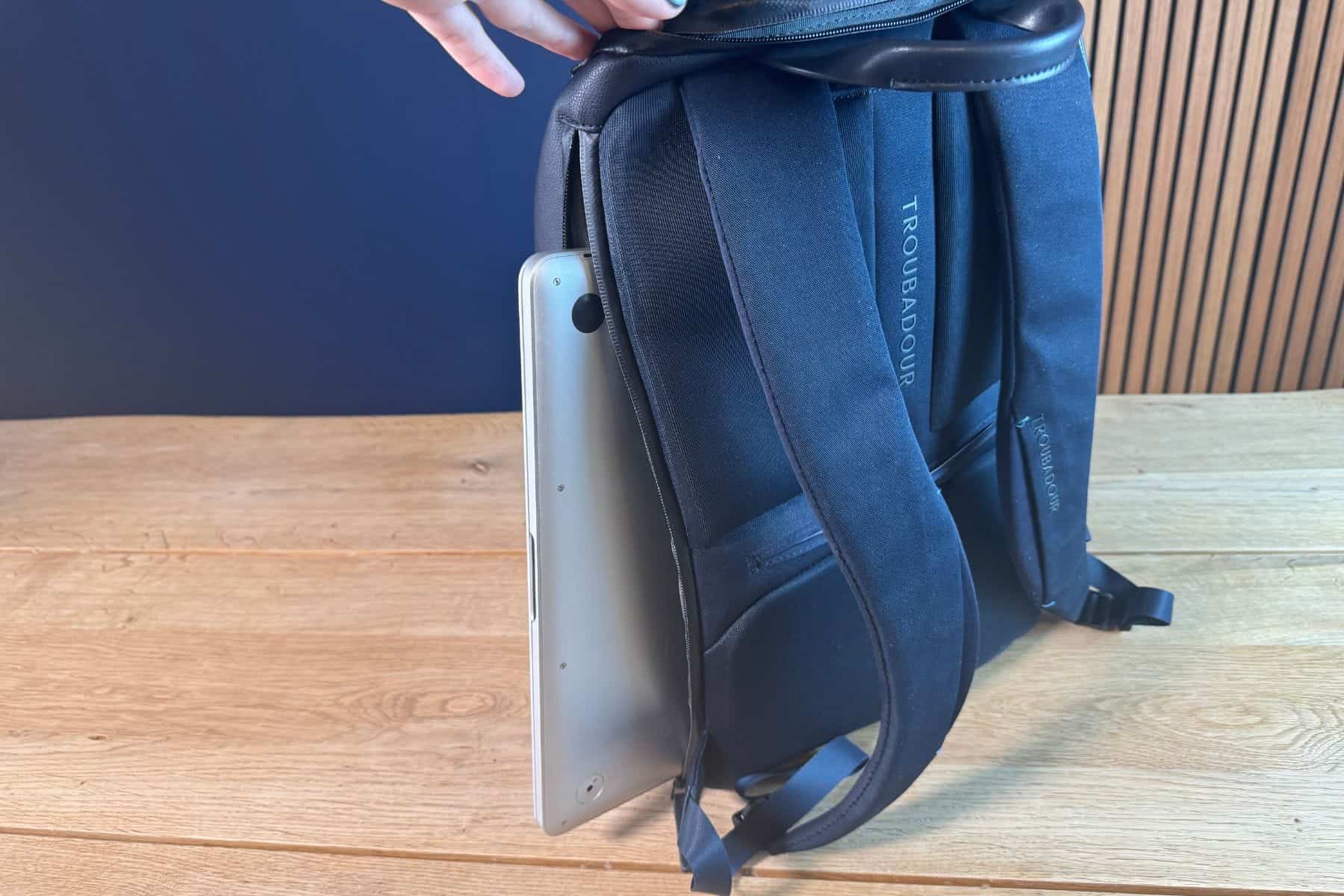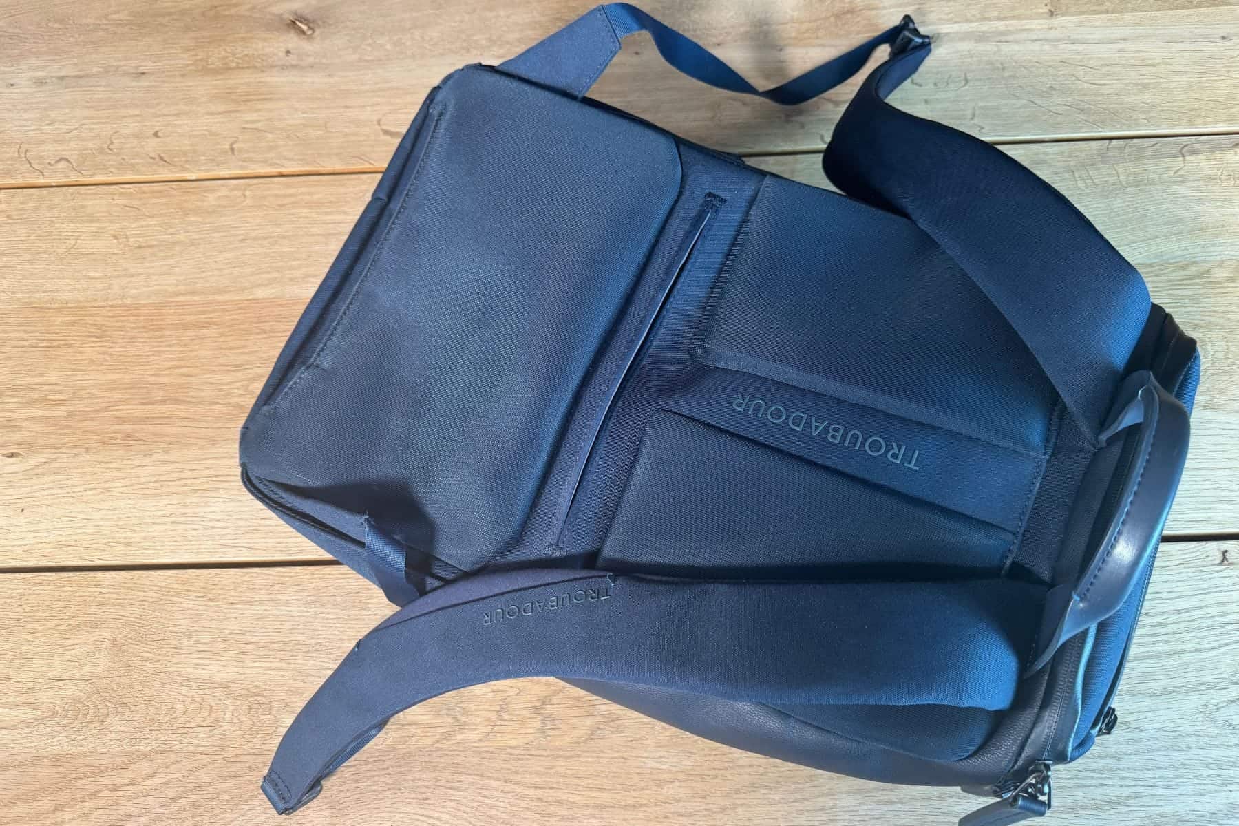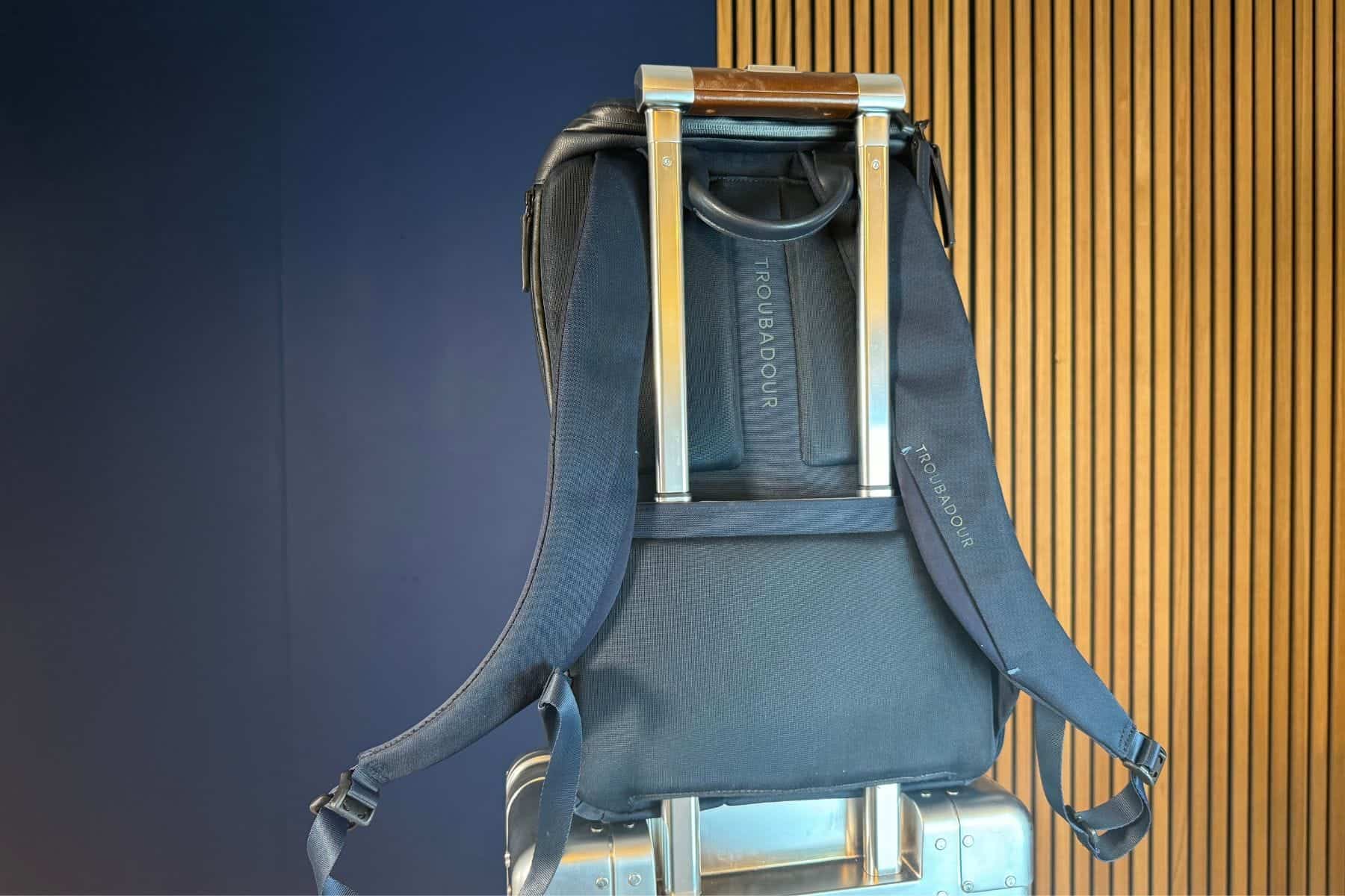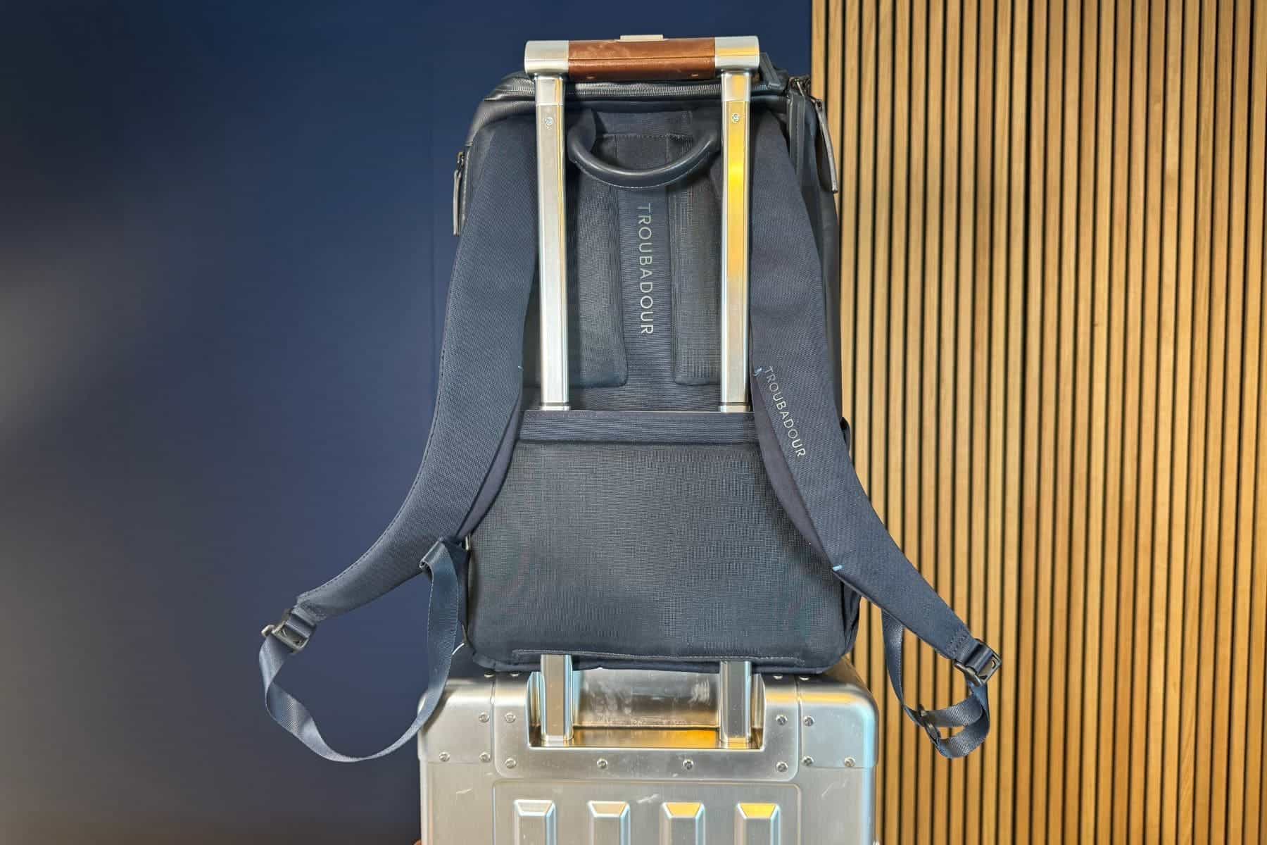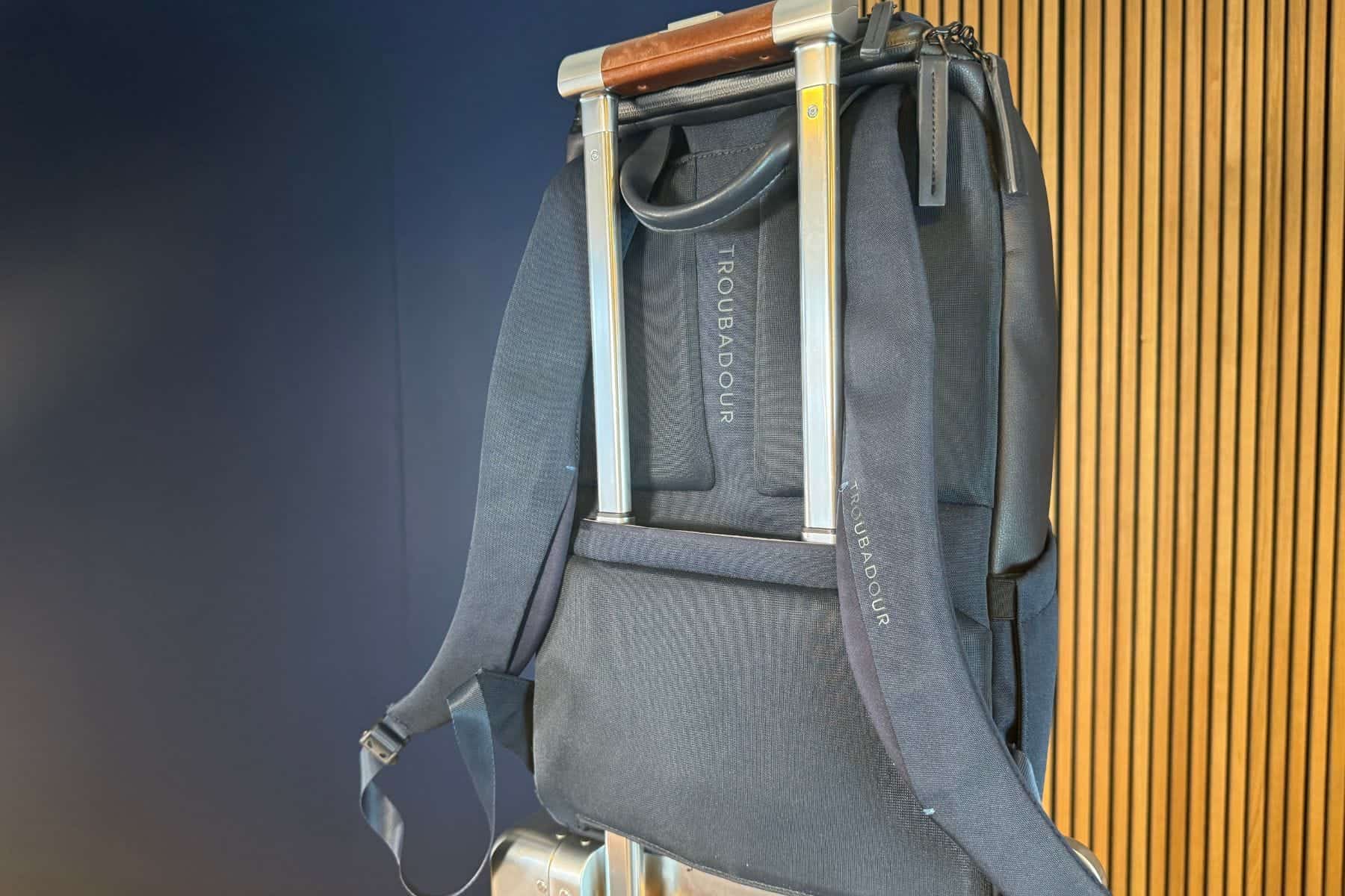 At first sight, we find the Troubadour Pioneer a sophisticated and practical backpack. Its external fabric is soft, with leather details and several well-designed pockets inside and out.