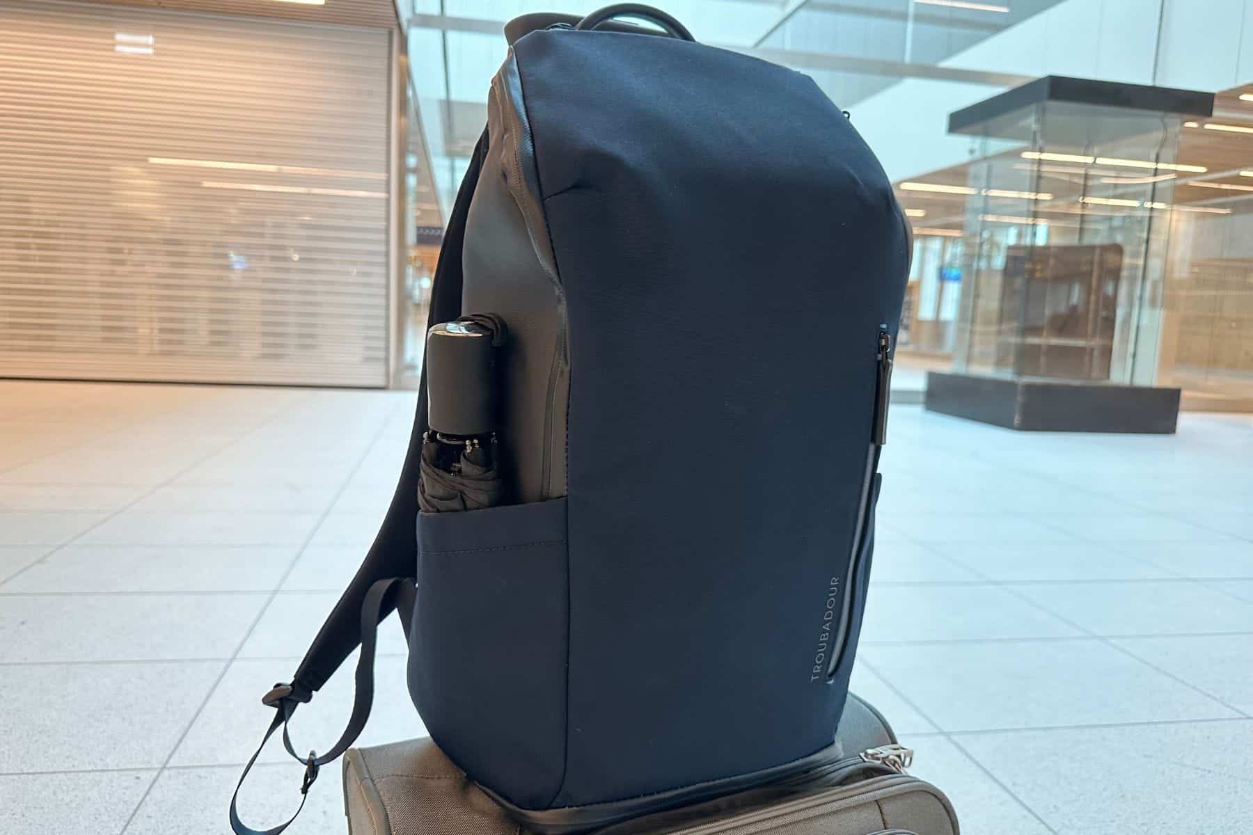 With its trolley sleeve at the back and two expandable water bottle pockets on each side, we’ve enjoyed using it for trans-Atlantic trips too. The front compartment opens fully, which is a nice feature for easy packing and quick access to documents.