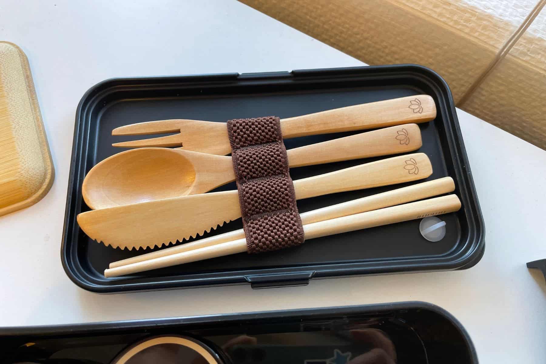 The cutlery set is a welcome bonus. Although each piece is made of wood, it doesn’t feel brittle. These utensils also feel pleasant to the touch. More importantly, the UMAMI All-in-One Bento Box for Adults/Children has storage space for them. But all wooden pieces, including the top lid, should be hand-washed.