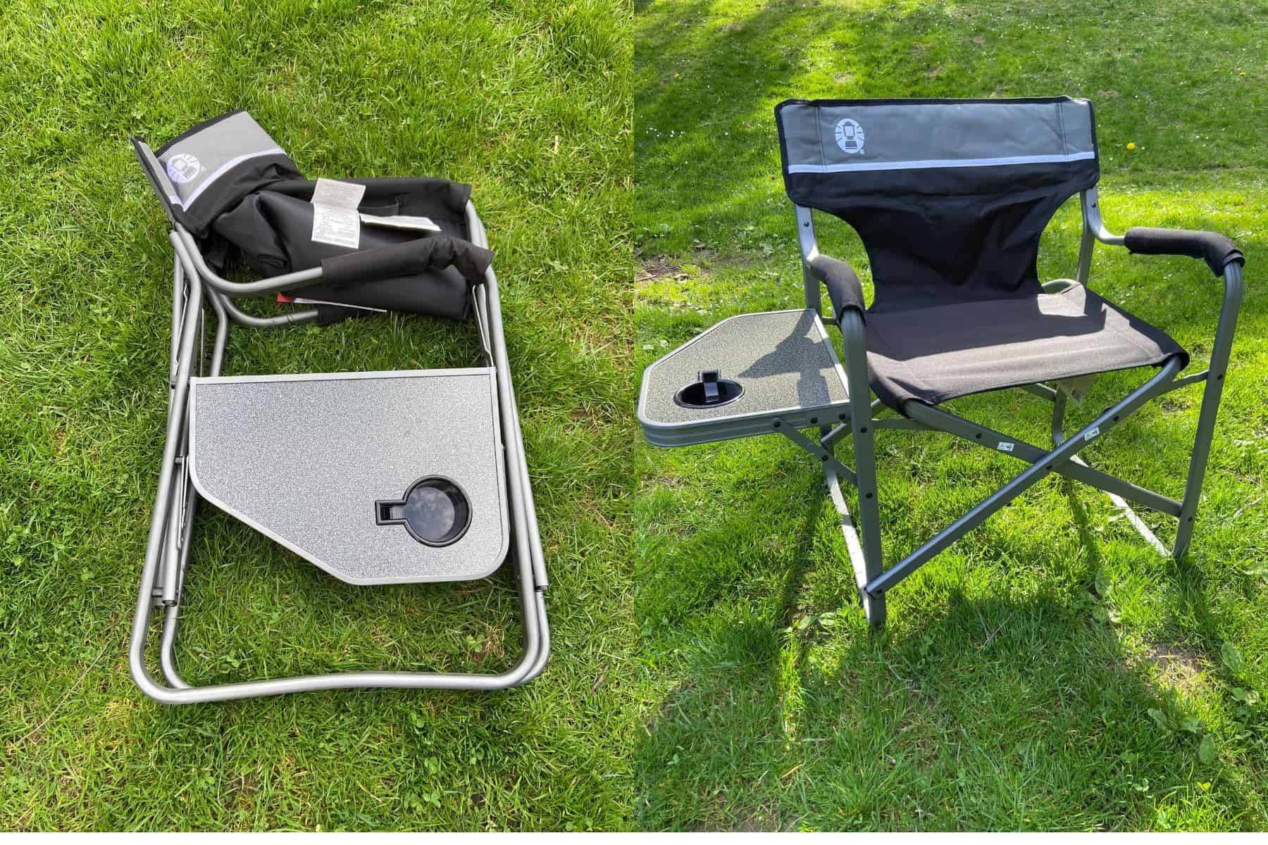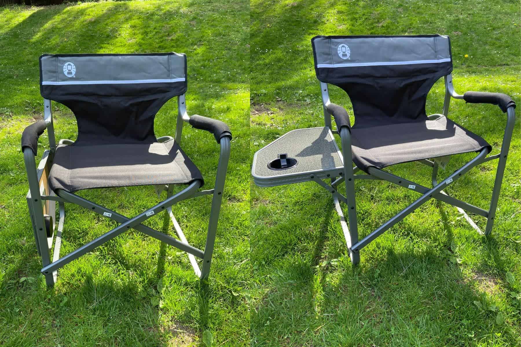 The best feature that the Coleman Aluminum Deck Chair can boast, is a collapsible folding table that juts out at seat level on the right side of the chair.