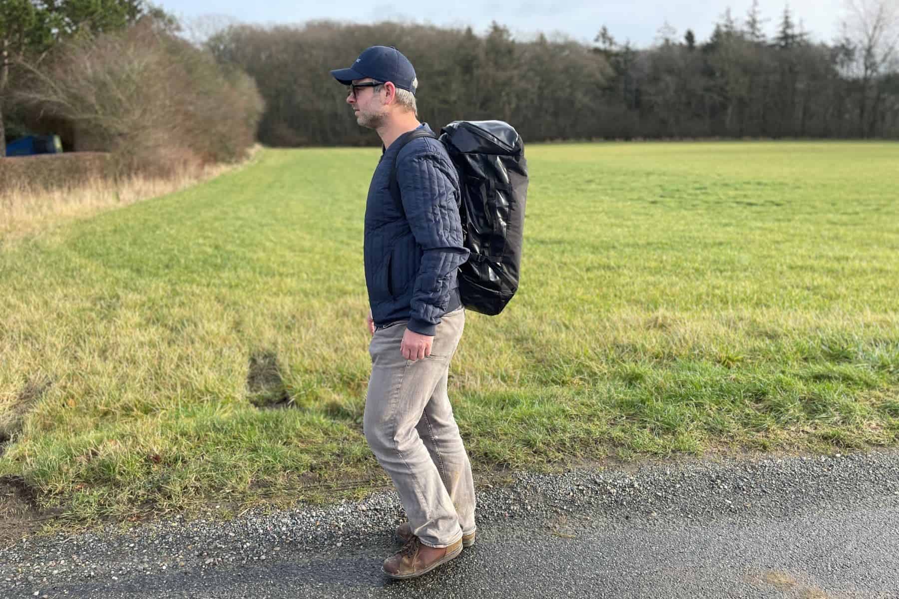 This is definitely a minimalistic duffel and it shows in the backpack straps. The slightly padded straps come without a sternum strap and hip belt–not uncommon for duffel backpacks. These straps are comfortable but have no back padding, mesh ventilation, and weight distribution. Due to this, it’s comfortable for short trips but not to walk around all day.