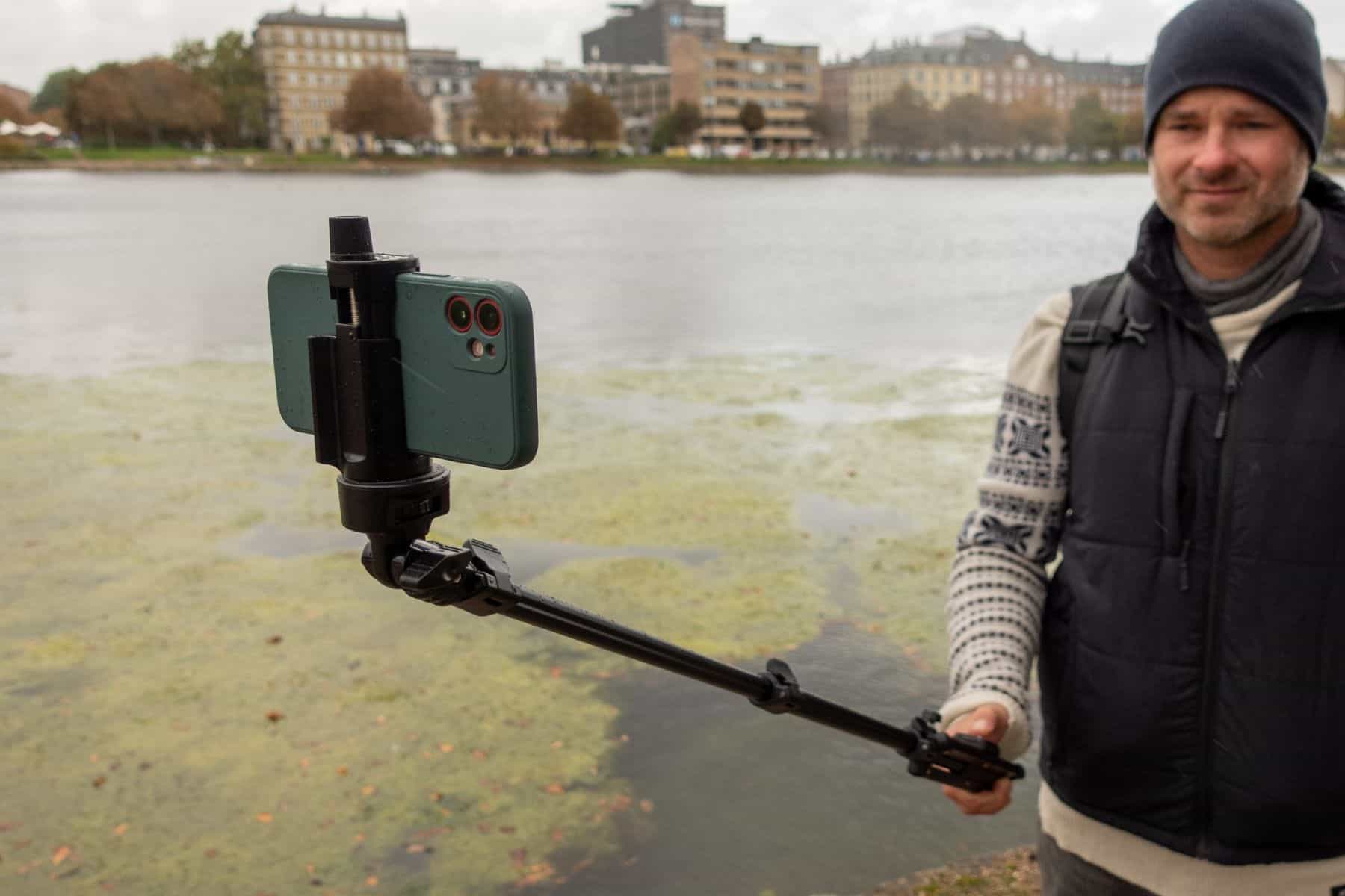 In both modes you can pull the telescope out to the maximum length (51”), which extends your arm’s reach when trying to take pictures from different angles.