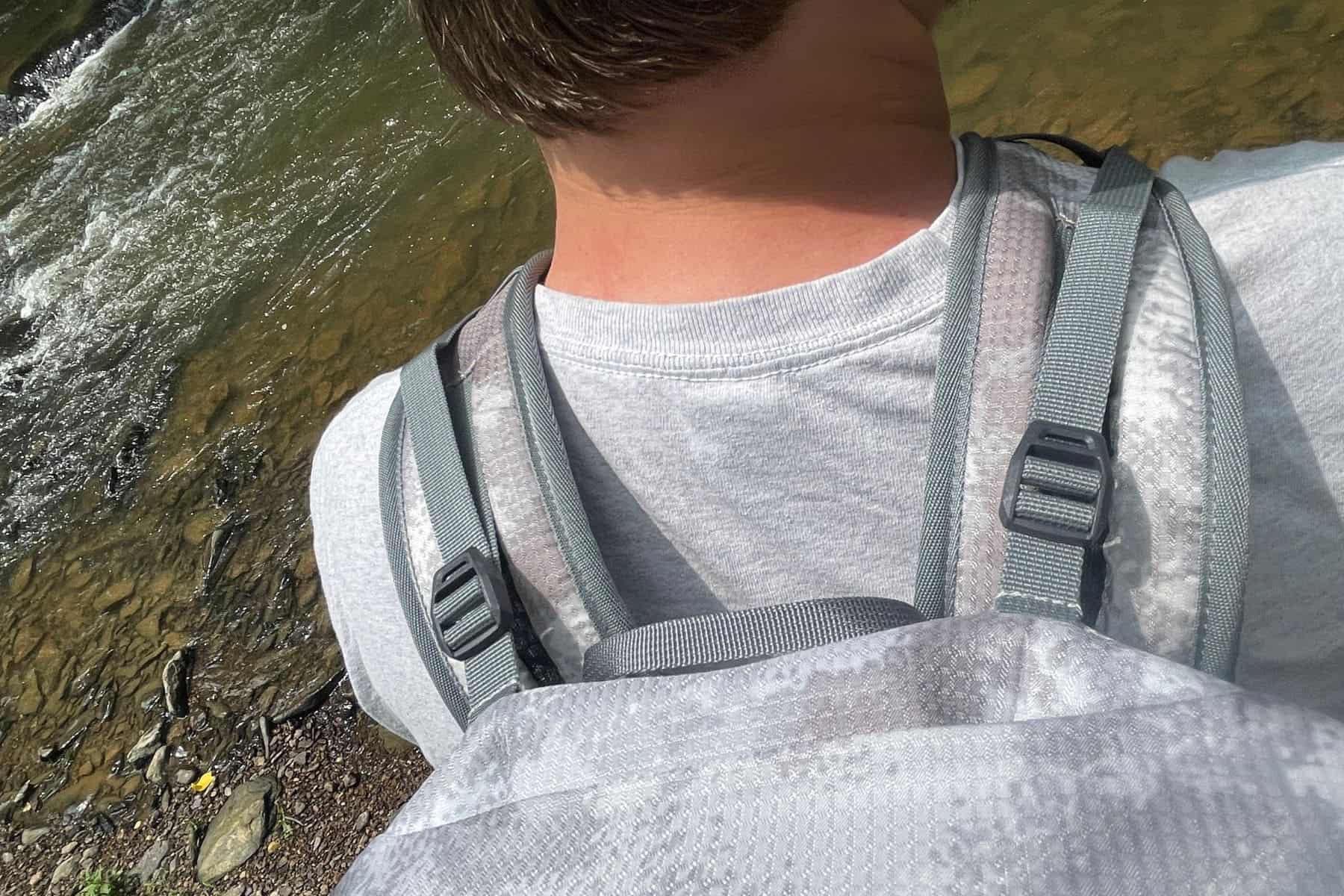 The ventilation and comfort were most noticeable in the back. The honeycomb-esque cushioned back panels are designed to provide comfort and support in carry ‘hotspots’ on the back. They did feel good on the back, though not completely noticeable, while also limiting the back sweat hikers can get from backpacks that do not have a back ventilation system. We are not completely sold if it performs better than suspended mesh back ventilation systems yet.