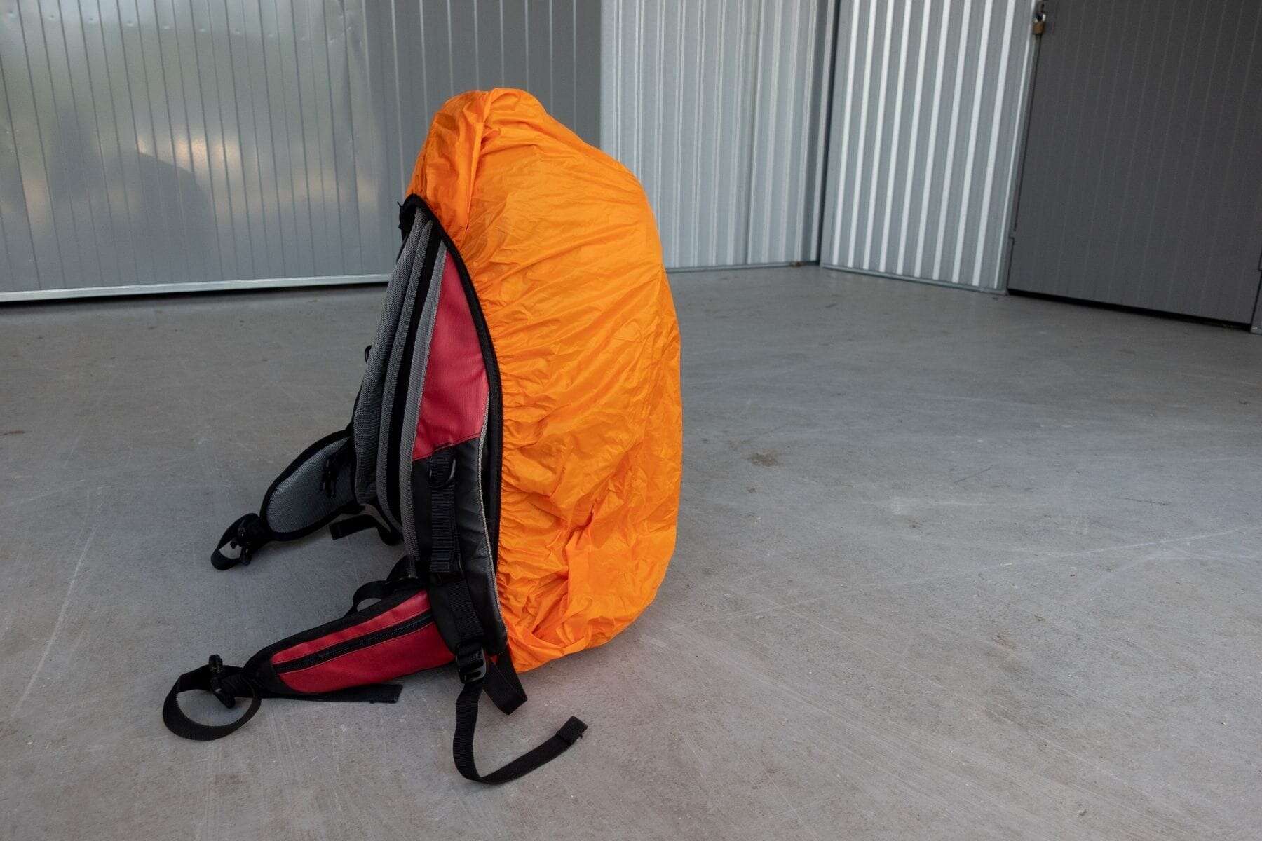 The rain cover must be removed entirely when you are attempting to get items from your main compartments.