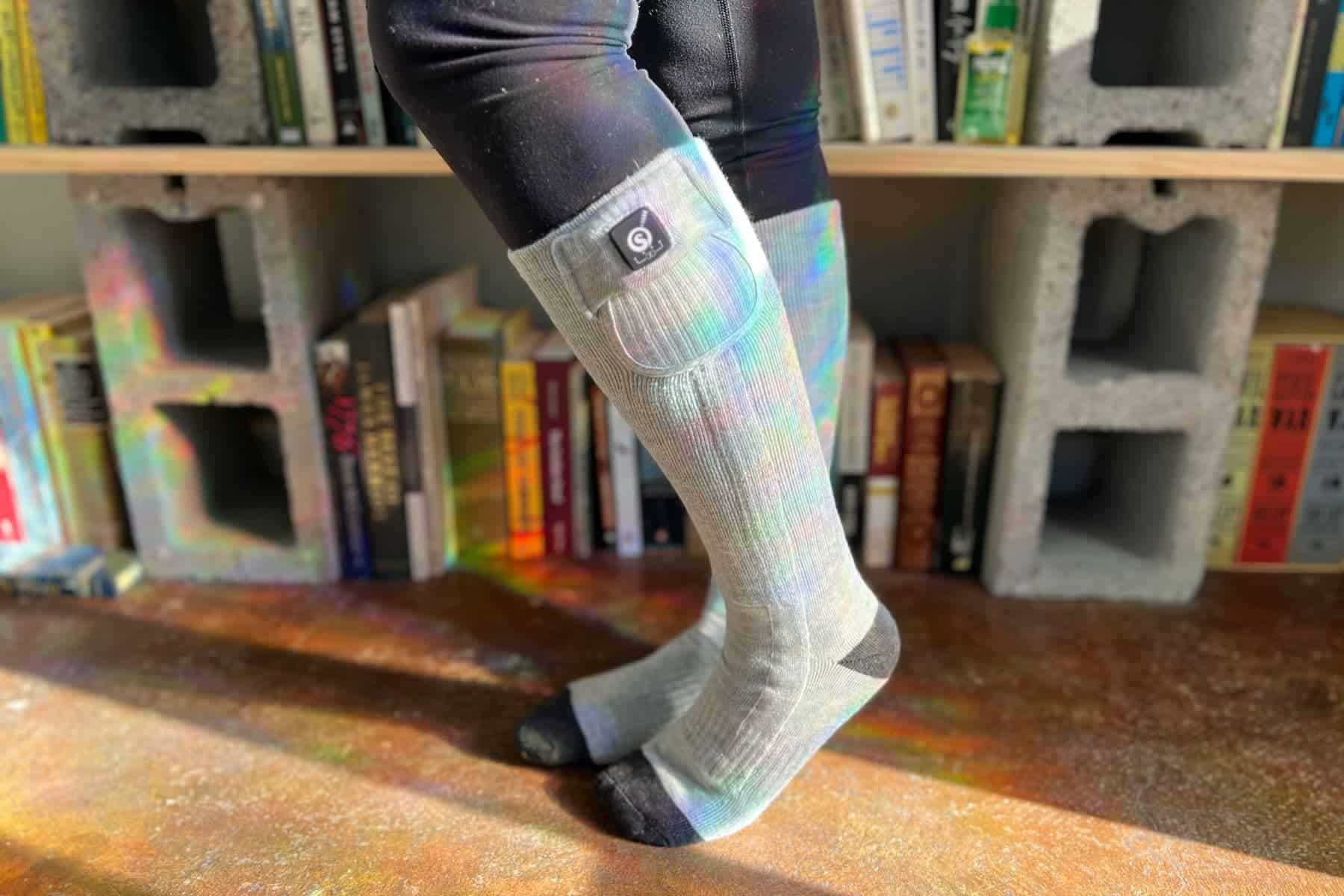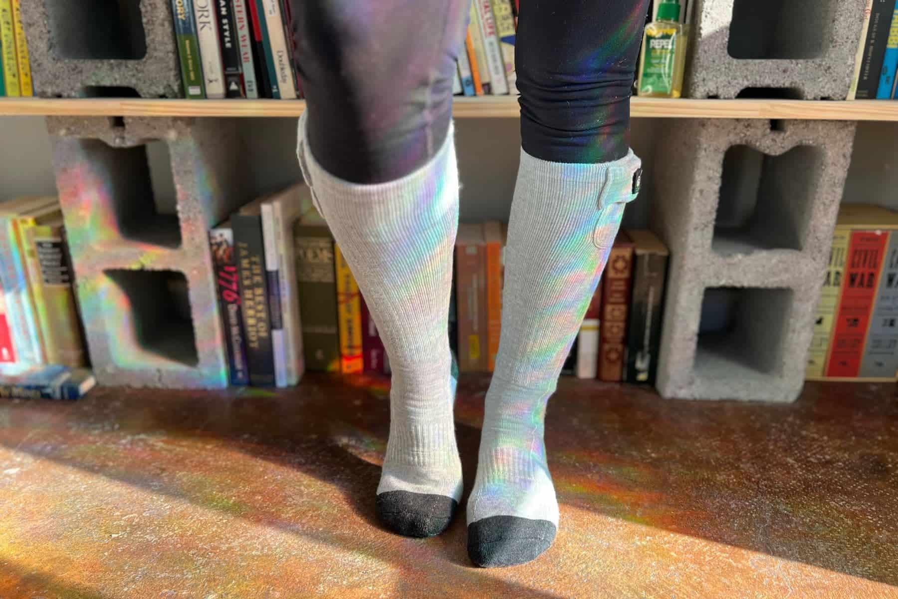 Charging the socks takes approximately 4 hours, and once charged, they can run for up to 7 hours on low heat, 5 hours on medium, and 2 hours on high. These run times are fairly standard and should give you enough heating time to keep your feet warm on a day hike, a couple hours in the snow or a cozy day spent at home. If you’re looking for something with a little more longevity for extended use, we might recommend a different pair like perhaps the Dr. Warm Wireless Heated Socks.
