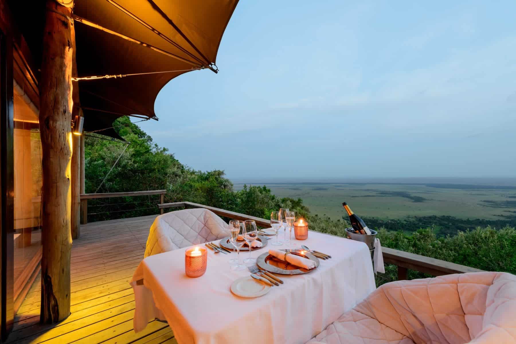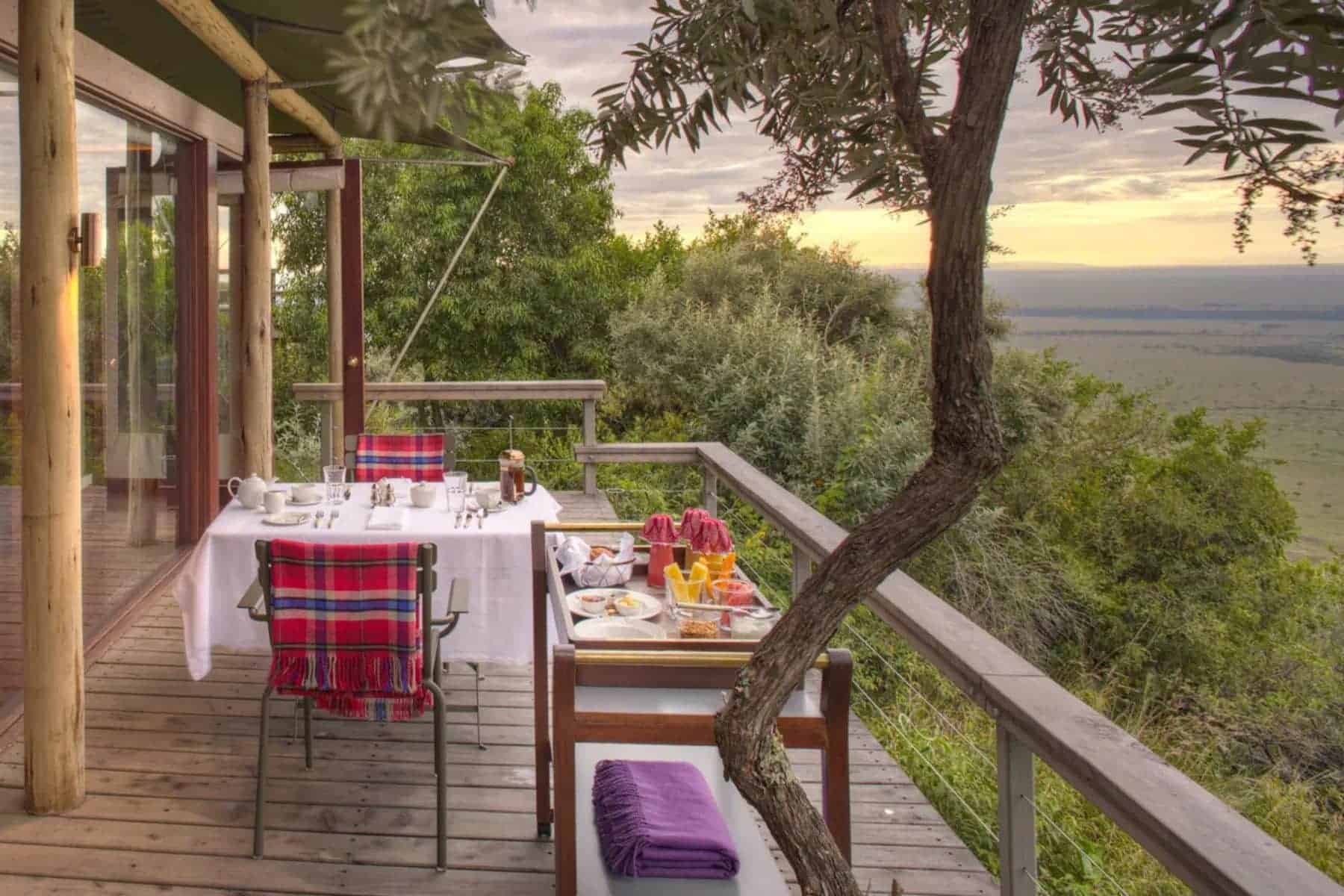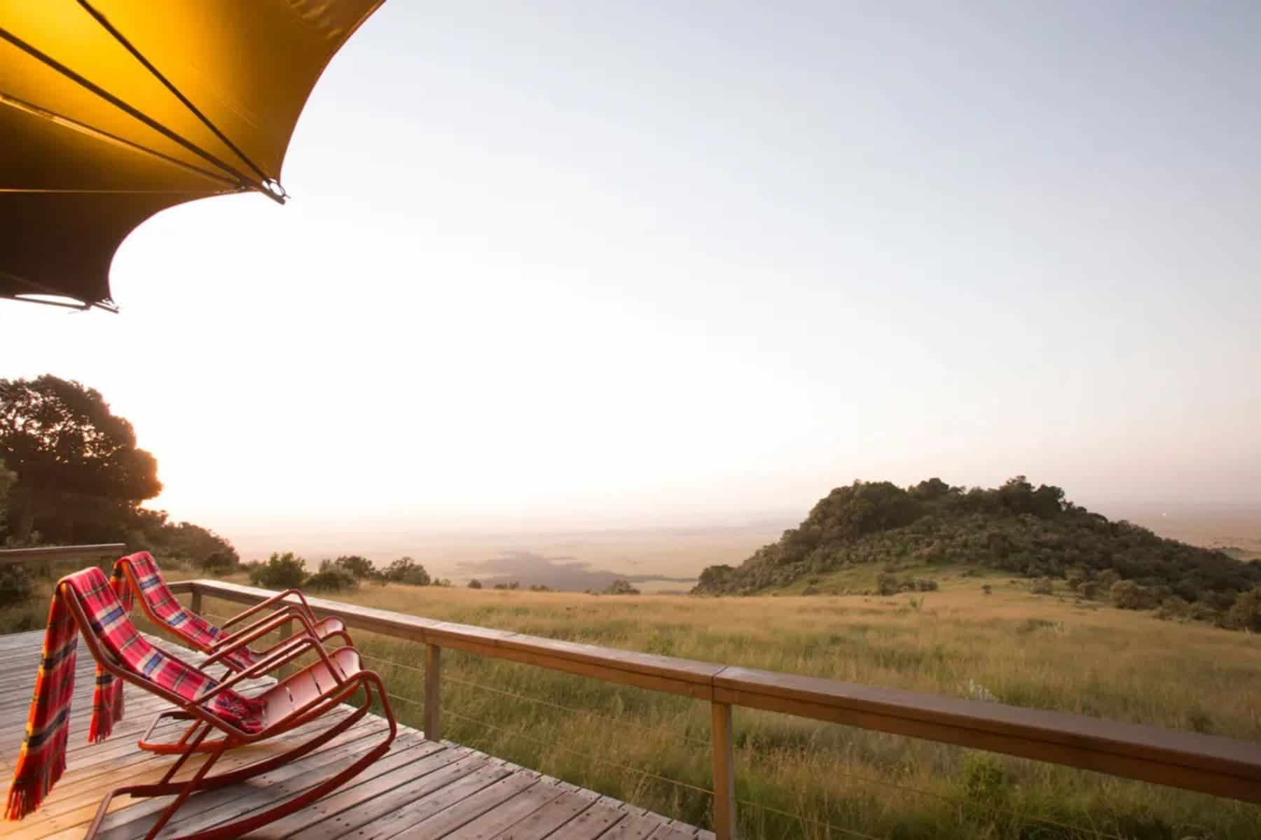 Expansive views of the Maasai Mara from suite terraces and guest common areas