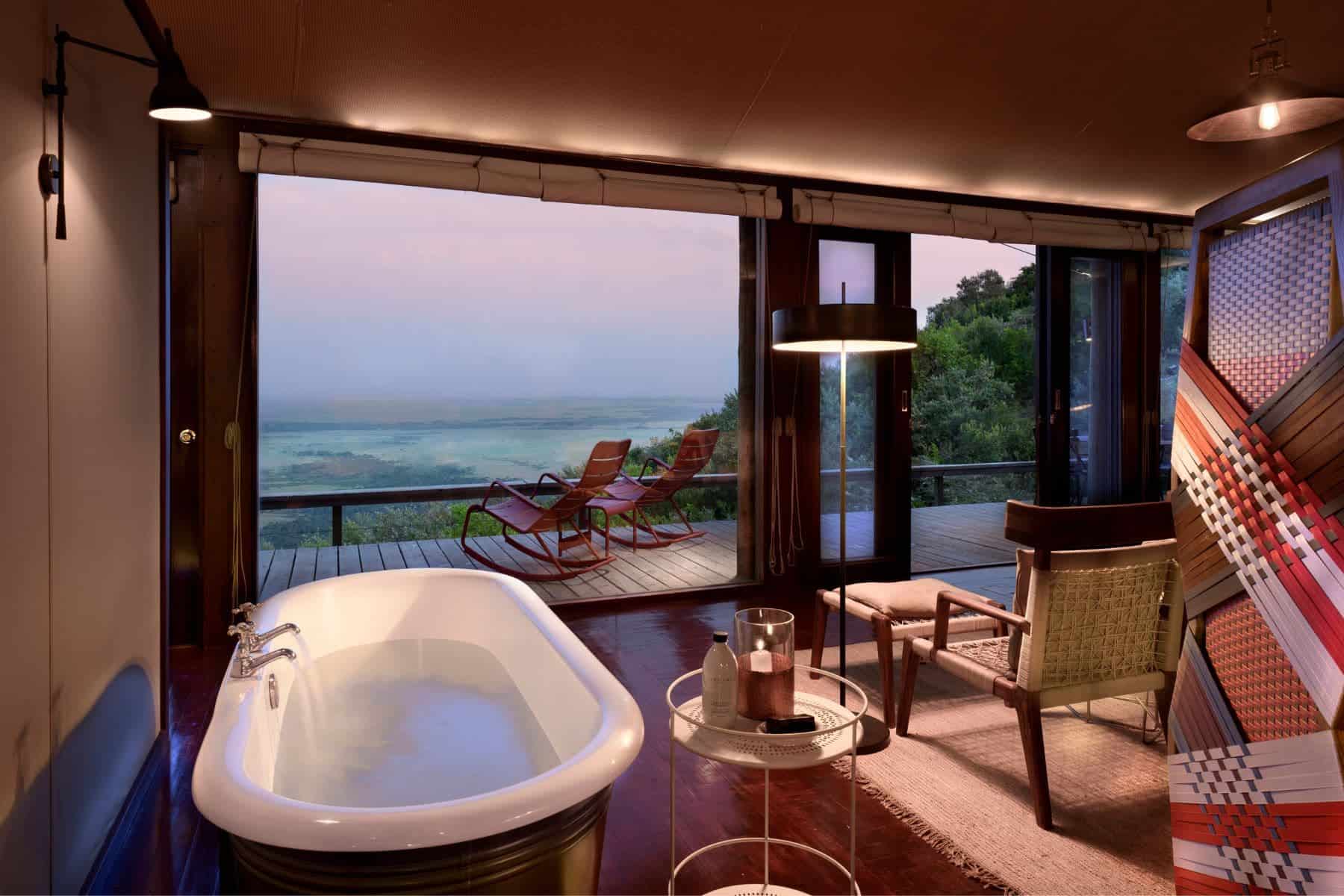 Tented Suites: There are two identical “camps” at the resort with 15 of these suites each. All of them are designed to capture the very best of the unbelievable views of the valley below, with floor-to-ceiling windows in the front. The roof and all sides are traditional canvas, but you can expect the space to be sealed and comfortable. Furnishings, the bathroom, and decor are luxurious and authentically local. Again, we can’t emphasize the view enough – from the bed, the bathtub, the terrace, the couch… or anywhere else.