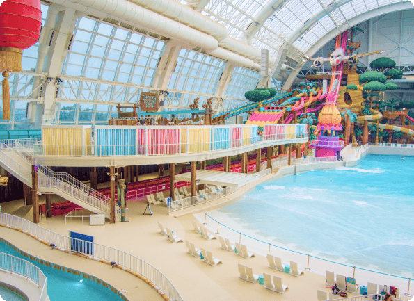 Dreamworks can claim many titles, including the largest indoor water park in North America! There are 370,260 sqft of fun water activities, with one of the world’s largest indoor wave pools at 1.5 acres and the world’s tallest trapdoor capsules at 14 stories high.