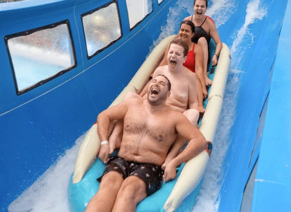 For the adults, there are areas to take a break from the excitement, like the hidden oasis in the jungles of Madagascar under cascading waterfalls, overlooking the lazy river while soaking in a hot tub, or enjoying a drink in the swim-up bar. If you plan to stay all day, you can grab some food at the Burger Shack to fuel up before returning to the slides.