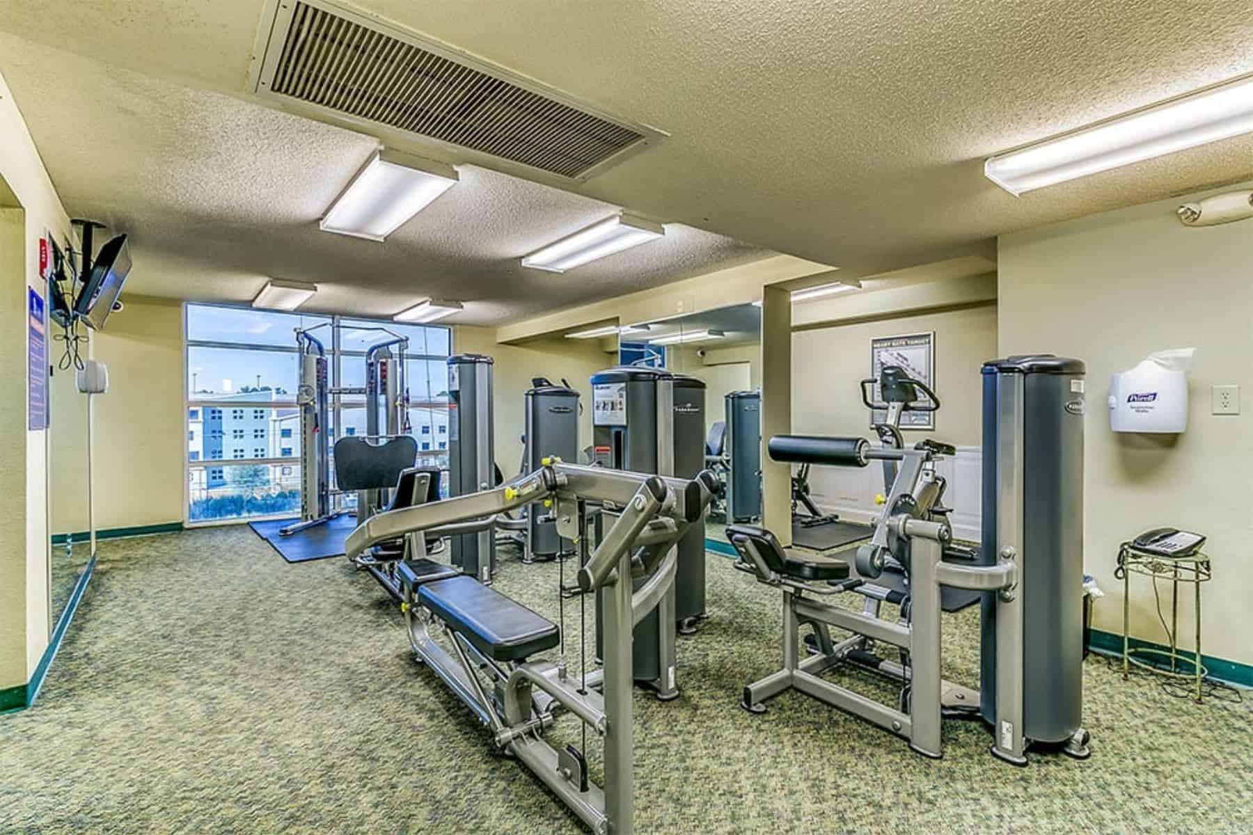 Amenities at the Dunes Village Resort include a 24-hour Fitness Center, indoor and outdoor pools, a full-service spa, 4 on-site dining options, an indoor waterpark, and regularly programmed activities for kids at the Dunes Village Kids Club.