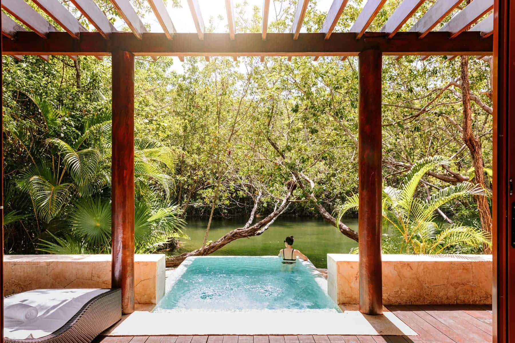 Speaking of cenotes, Mayakoba has its very own – the property is crisscrossed by crystal-clear freshwater lagoons, and an underground cave entrance sits on the property. The parks of Xcaret, Xel-Ha, and Xplor are just 30 minutes down the coast if you want to see even more.