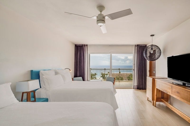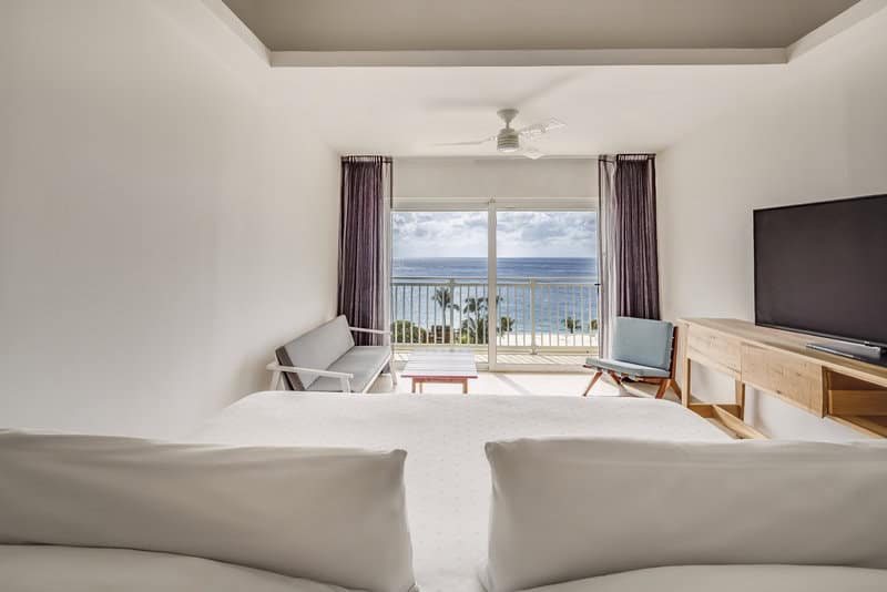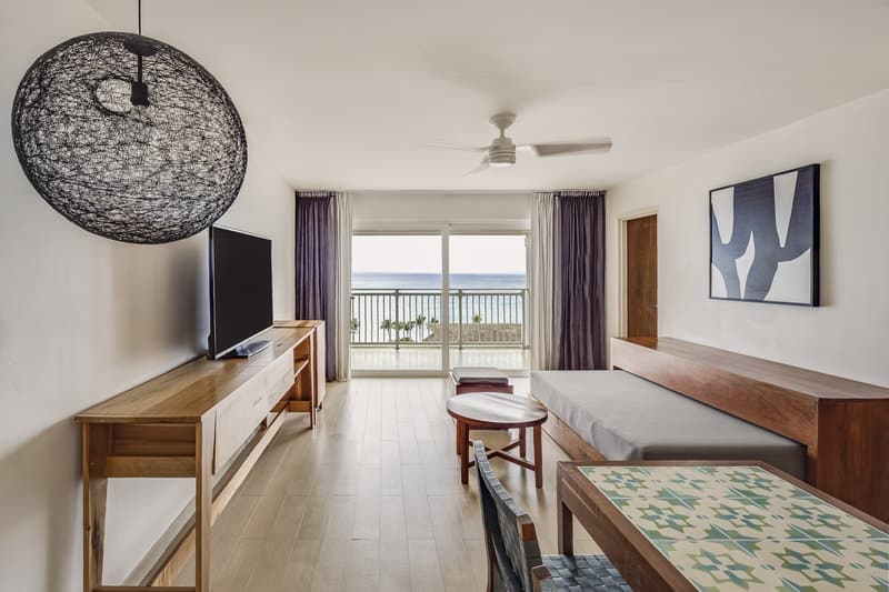 Deluxe Rooms: Choose an ocean view with an oversized balcony or a ground-floor garden view with your own private pool. The Deluxe rooms come with your choice of one king bed or two double beds, and they both have a bathroom with a shower.