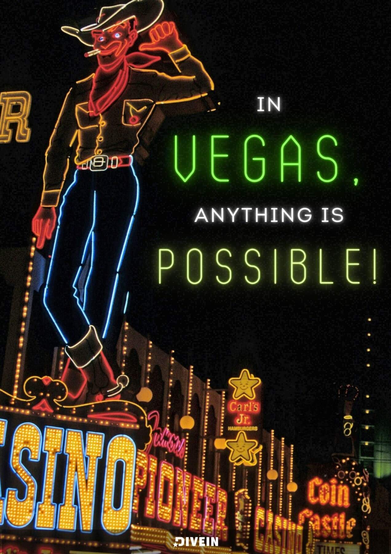 - “In Vegas, the night is young and the fun never stops.”