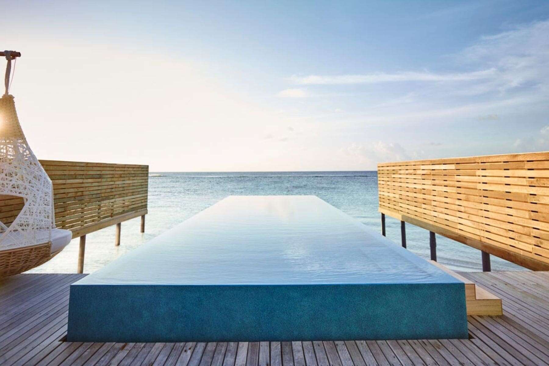 Maldives Water Villas: This category gets you over the crystal clear water of the lagoon – undoubtedly a bucket-list stay for many travelers and great for a romantic stay. More than 1,050 square feet (98 square meters) of living space is complete with touches like a glass floor window, a massive deck with direct ocean access, and a catamaran net hammock over the water.