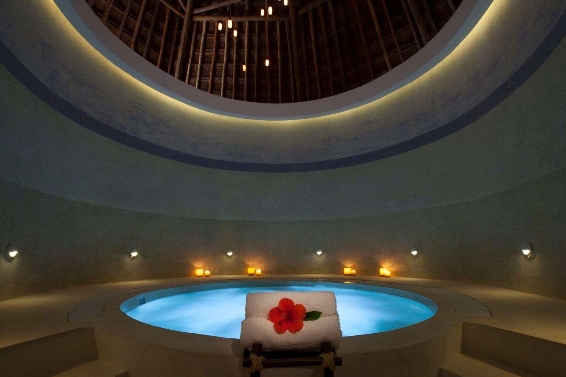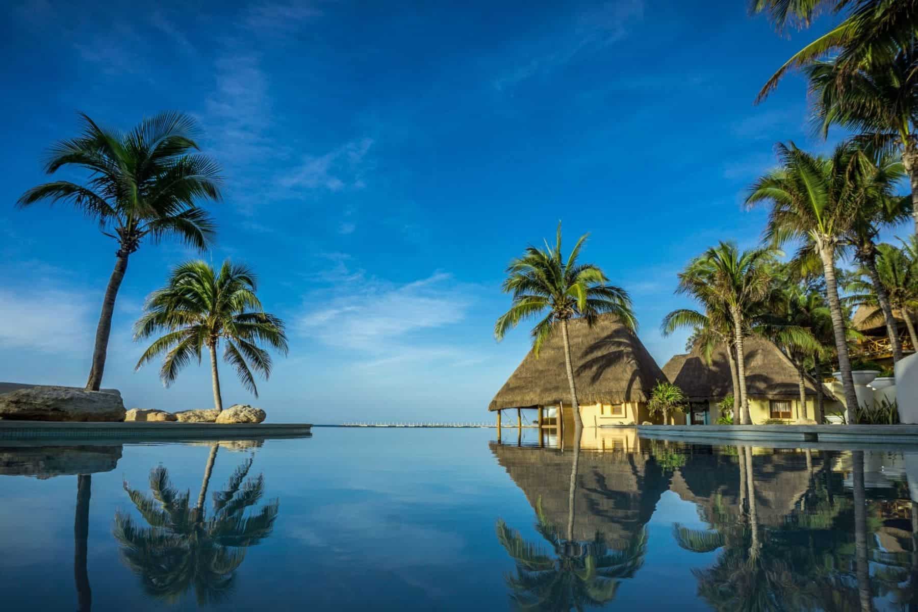 Rooms at the Mahekal Beach Resort are Caribbean bungalow style with thatched roofs and Mayan-style architecture. While you’ll have wifi to stay connected, note that no rooms are equipped with televisions. A number of rooms, suites, and beach houses are available to choose from.