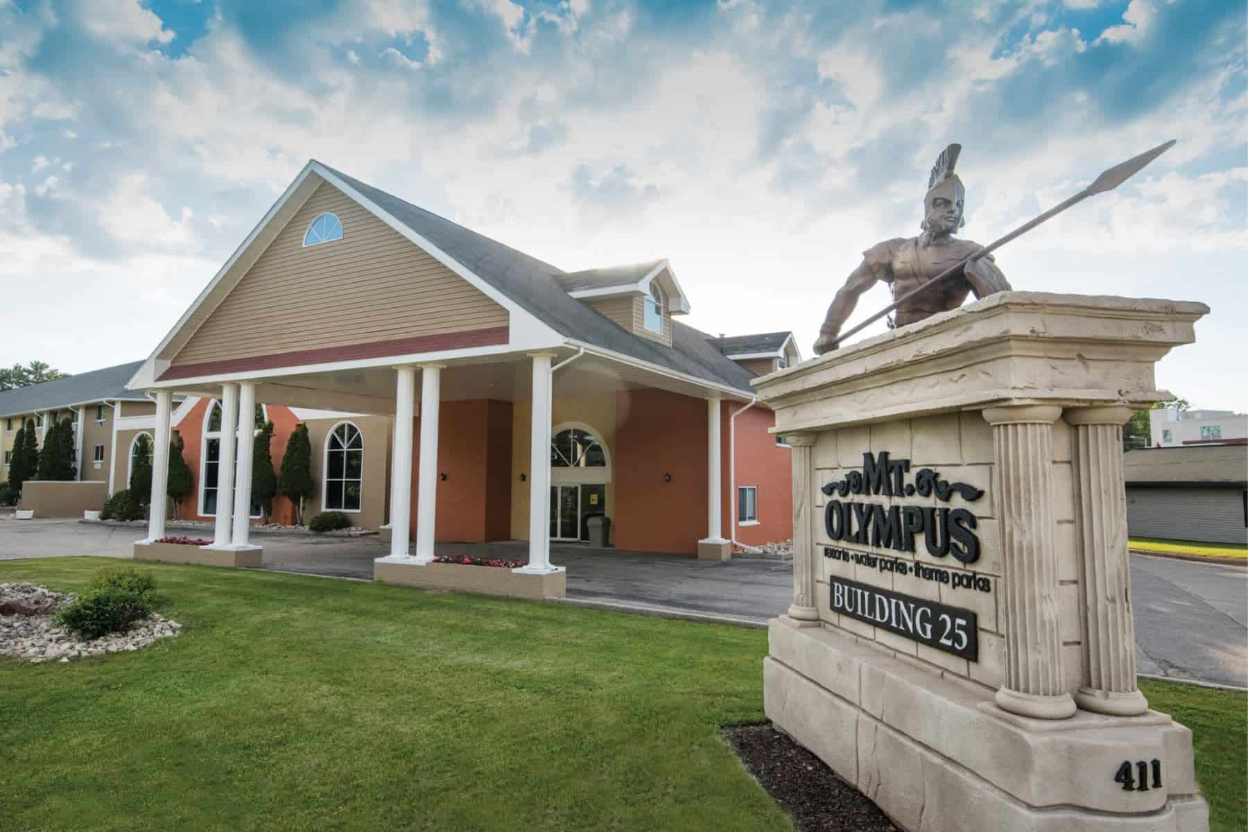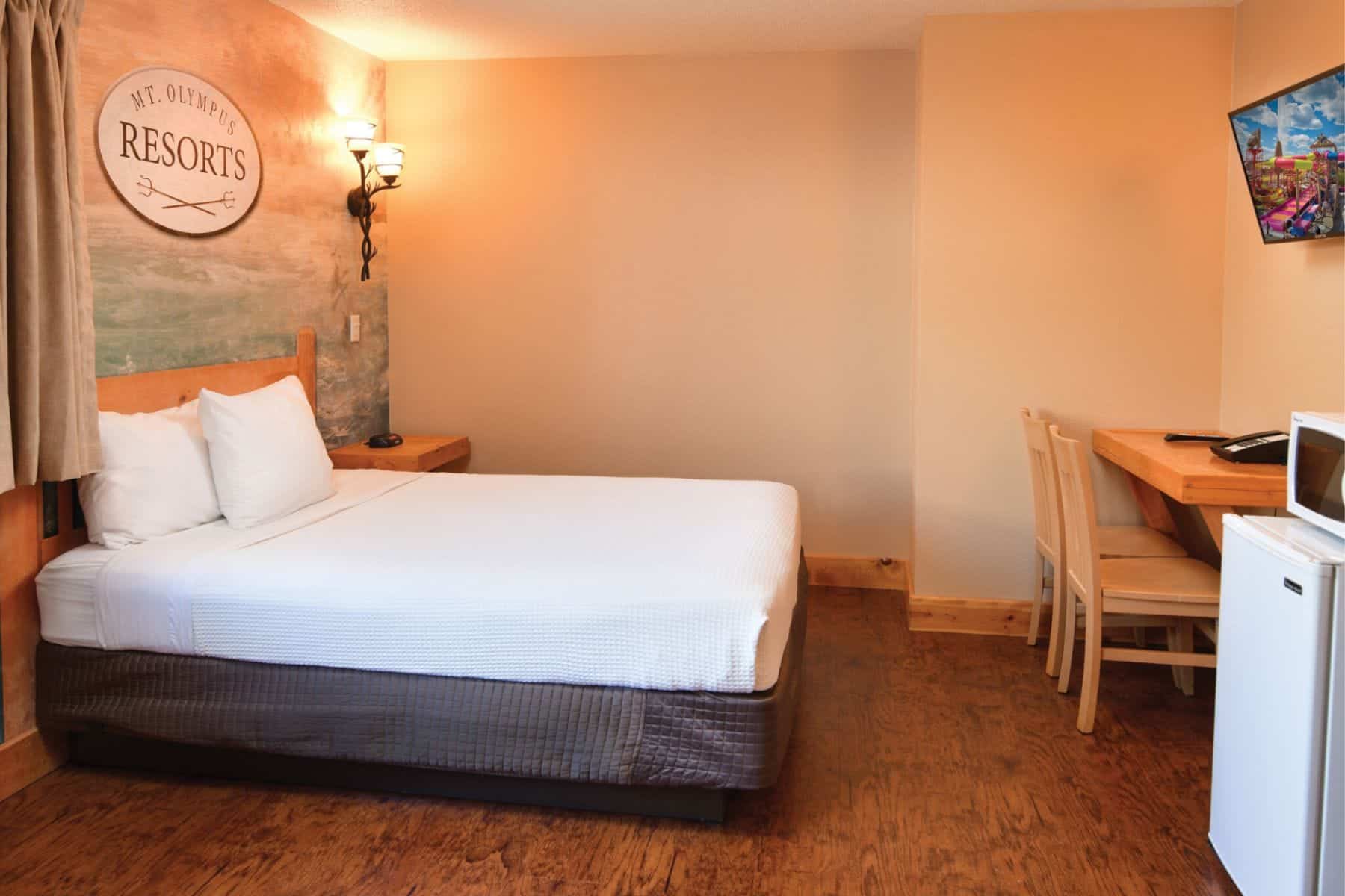 Mt. Olympus Resort Rooms are a collection of rooms that are mostly older motels that were purchased by Mount Olympus. They are a short drive away from the Mount Olympus parks.