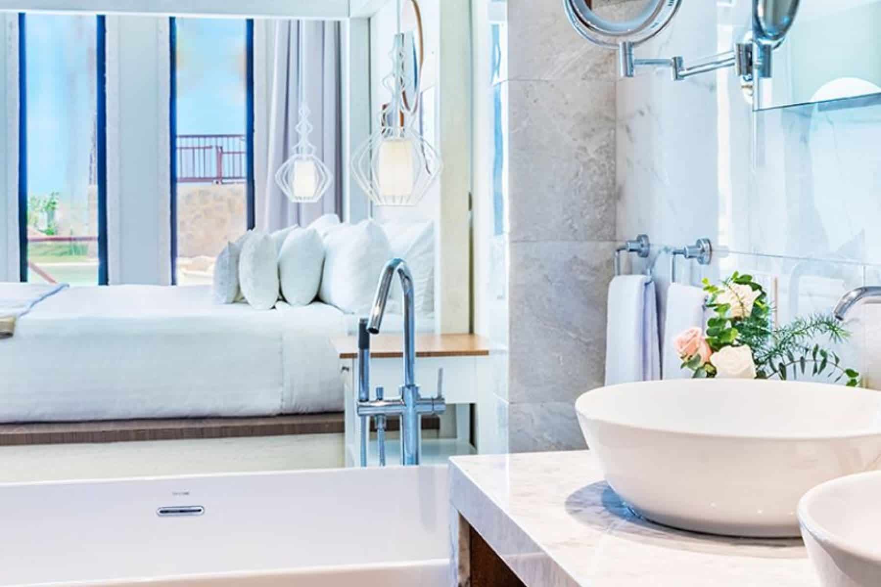 Castle Honeymoon Suite or Imperial Suite: These are major upgrades for couples who want the ultimate luxury and romance, as they offer private plunge pools overlooking the sea and a huge amount of extra space with sleek, modern touches.