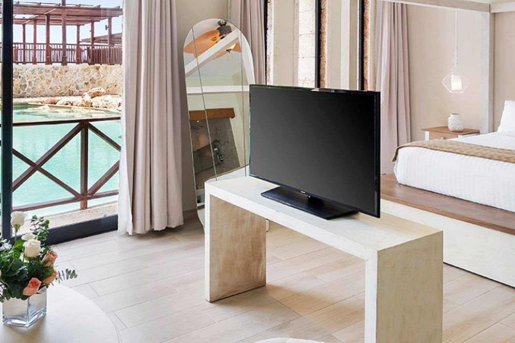 Beach Front or Swim-Out Junior Suites: The former is in the main building with direct beach access, while the latter is in the Castle and puts you straight in the pool from your terrace. Beach Front is slightly larger, while Swim-Out is the standard size like above.