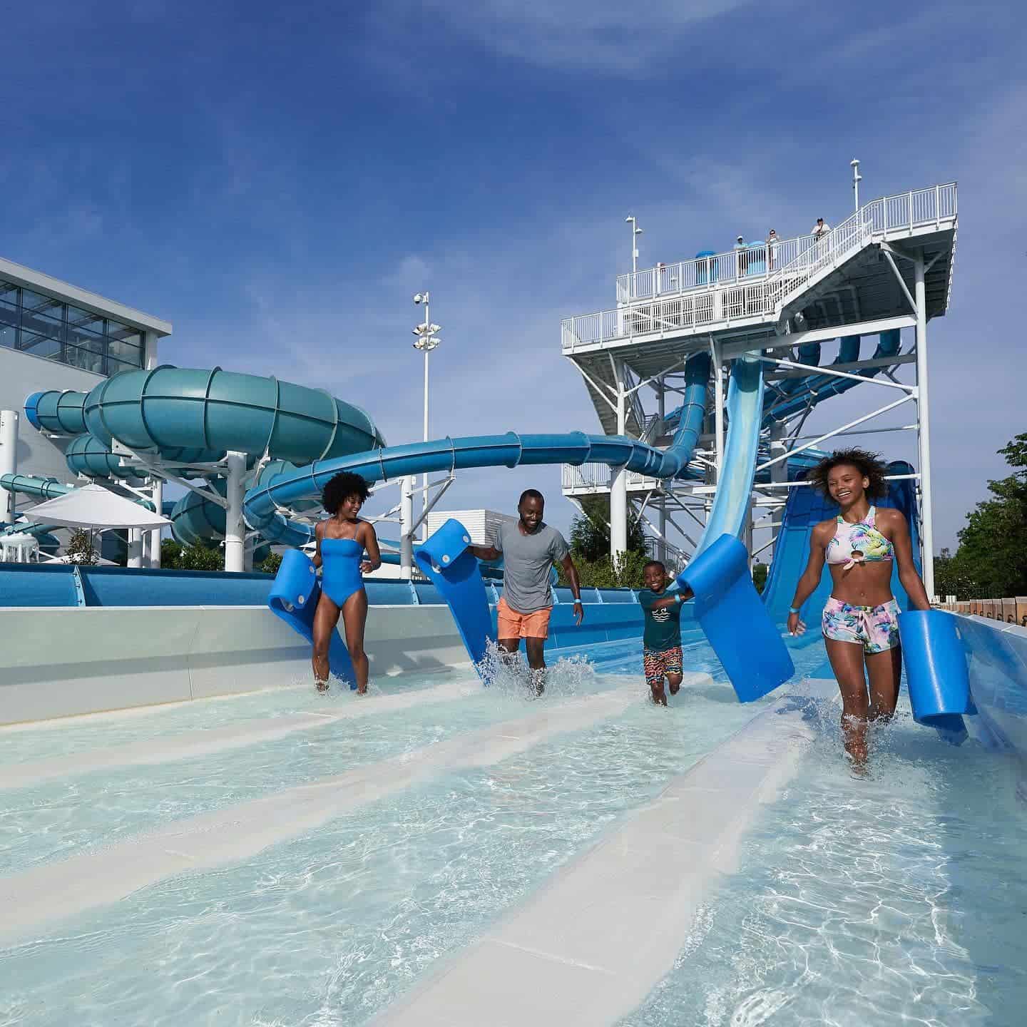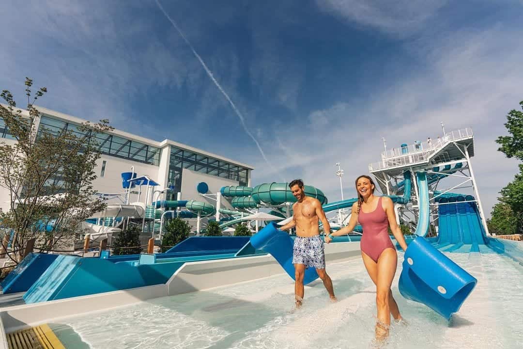 This unique waterpark lets you choose whether to experience the thrill of exciting rides or chill out with the mellow ones. The Down Tempo lazy river has you floating on a relaxing river through cavernous rock with LED lighting and music. In contrast, the Up Tempo not-so-lazy river has a current that swiftly takes you around a rapid river with waterfalls and spray features that will surely get you wet.