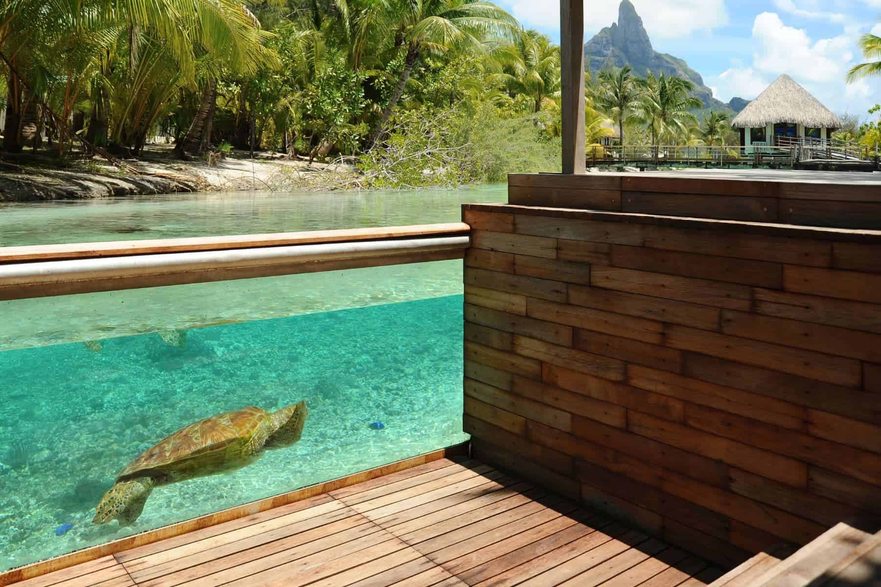 It occupies a prime location on Motu Piti Aau in between the St. Regis and the InterContinental. It has quick access to shark and stingray sandbars, but a longer boat ride to Vaitape for those who want to explore the main island.