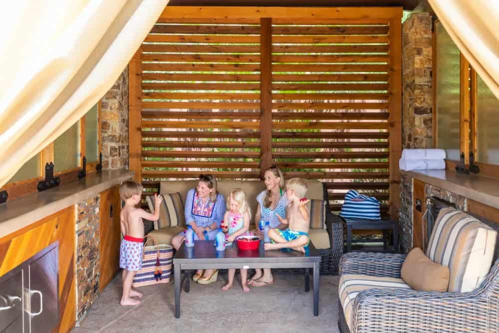 For the most exclusive poolside experience, guests can reserve a private cabana for the day. There are three cabana varieties that provide privacy and relaxation out of the sun, and each package comes with food and drinks. The top cabana, called the Crow’s Nest, sits at the top of the pool tower where the waterfall and slides begin, and reserving it will get you sangria and s’mores kits to enjoy around the fire pit.