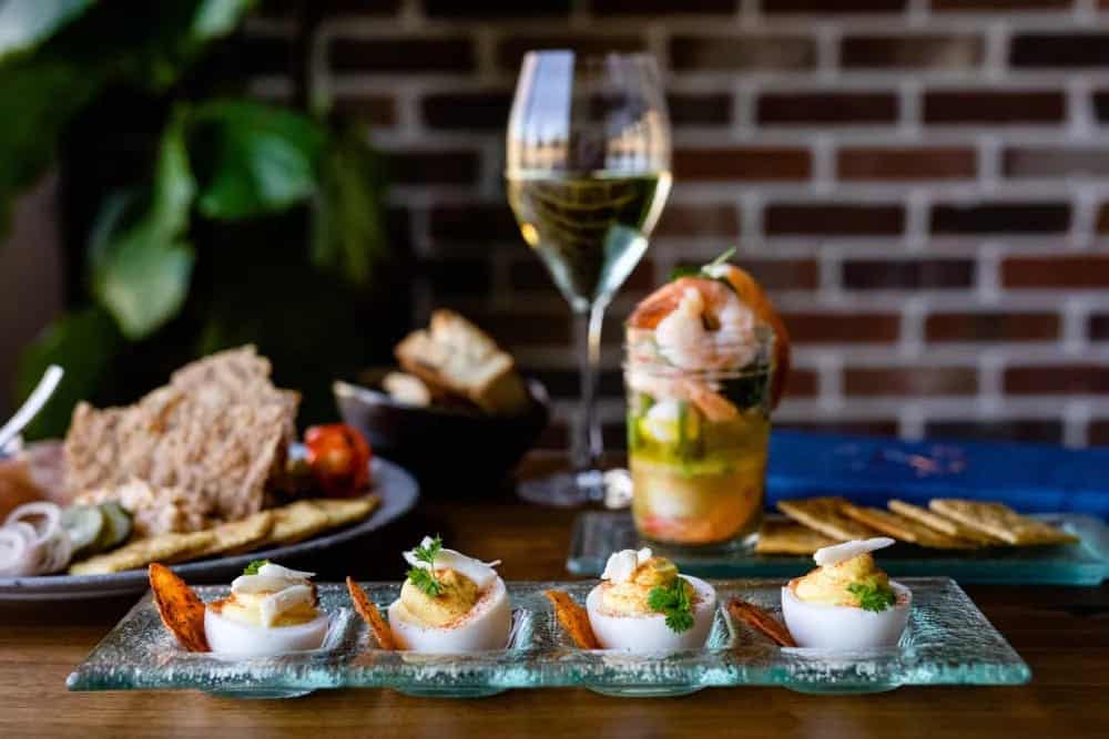 The main restaurant at The Woodlands Resort is Back Table Kitchen & Bar, open for breakfast, lunch, and dinner. The menu makes use of local and seasonal ingredients to bring guests southern-inspired cuisine featuring global accents, and it overlooks the beautiful 18th hole of the golf course.