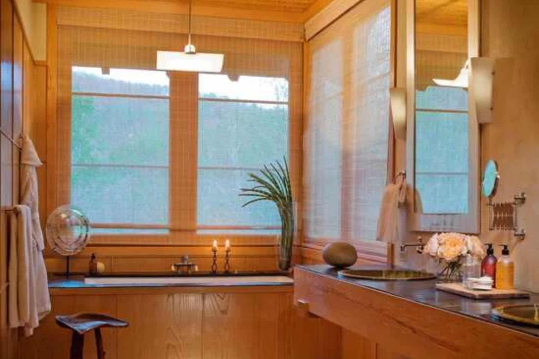 The Bridge House Spa lets guests choose from various facials, massages, and body treatments for an additional fee. You can even enjoy a spa treatment in your private cottage. There is also a state-of-the-art fitness center where you can get personalized training and take yoga classes. A unique activity is to bathe in a Japanese Furo, soaking in 104°F while looking out at the forest.