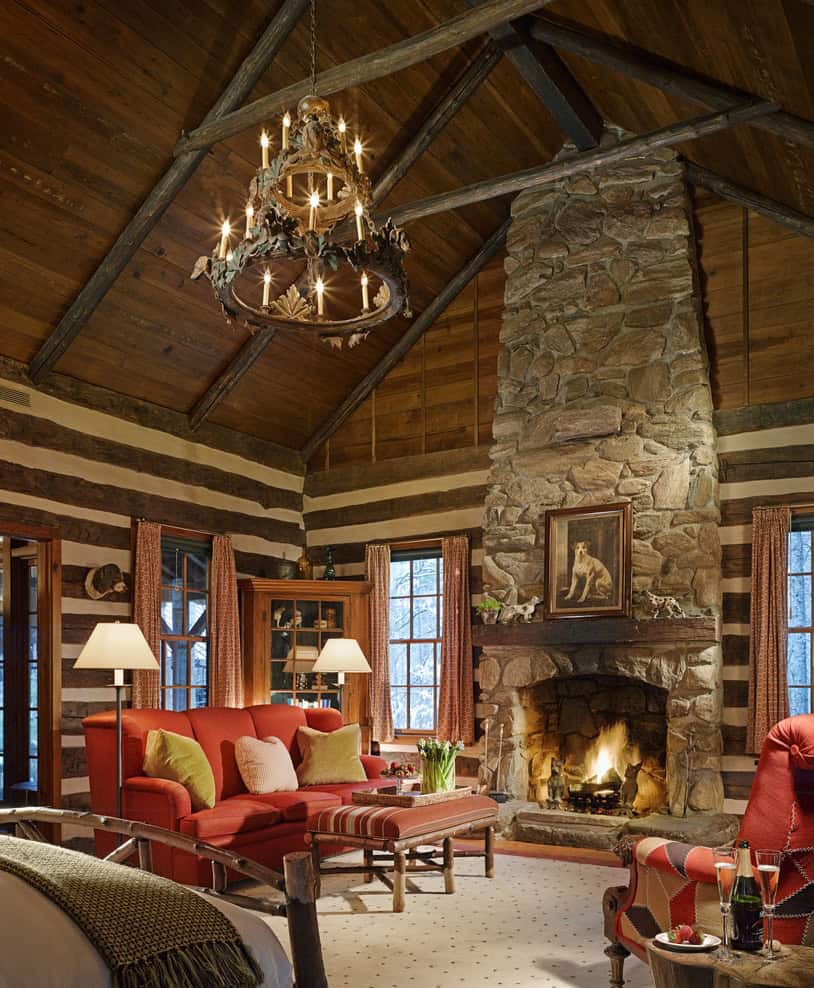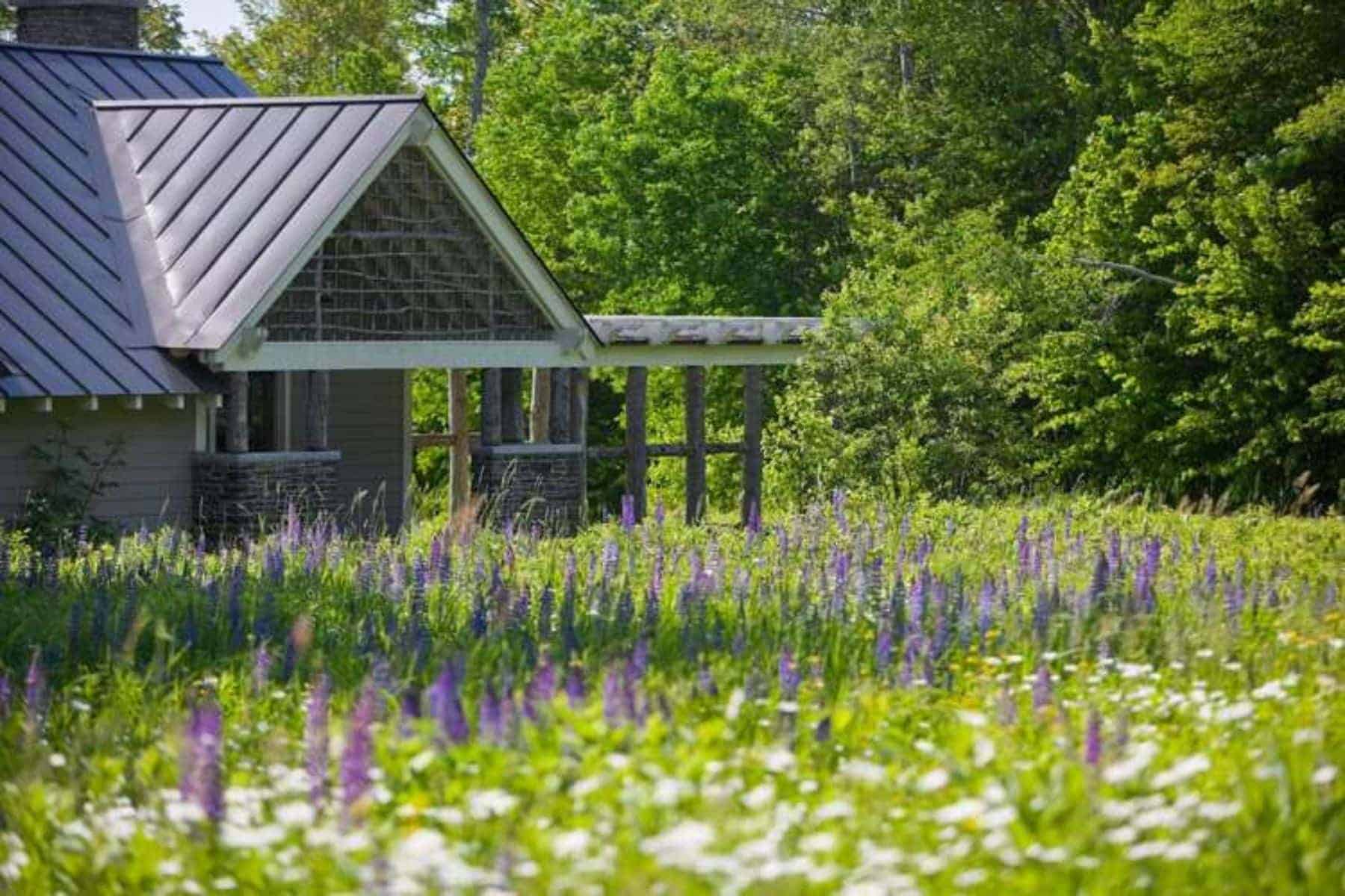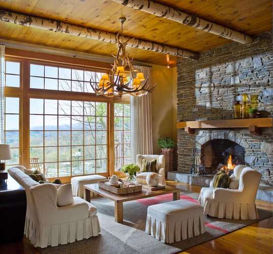 The Lodge: The Lodge is spaciously comprised of two suites and a common area of over 3,350 square feet. It is conveniently located next to the Main House and is available exclusively as a two-bedroom cottage. The Lodge features a tulip post king bed, two full bathrooms, one-half bath, two fireplaces, and plenty of space for reading. You can enjoy views of Mt. Ascutney on the covered porch and stone patio.