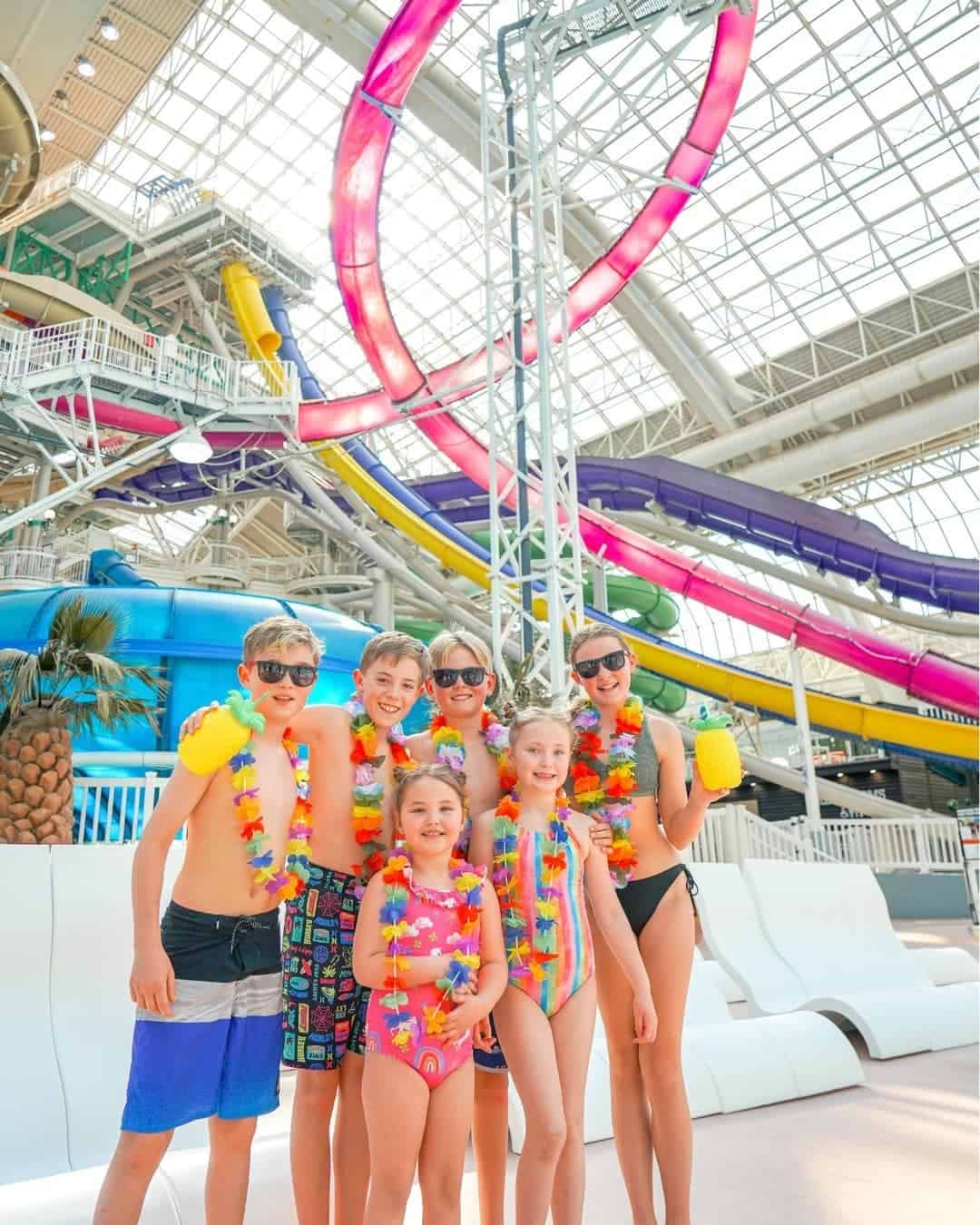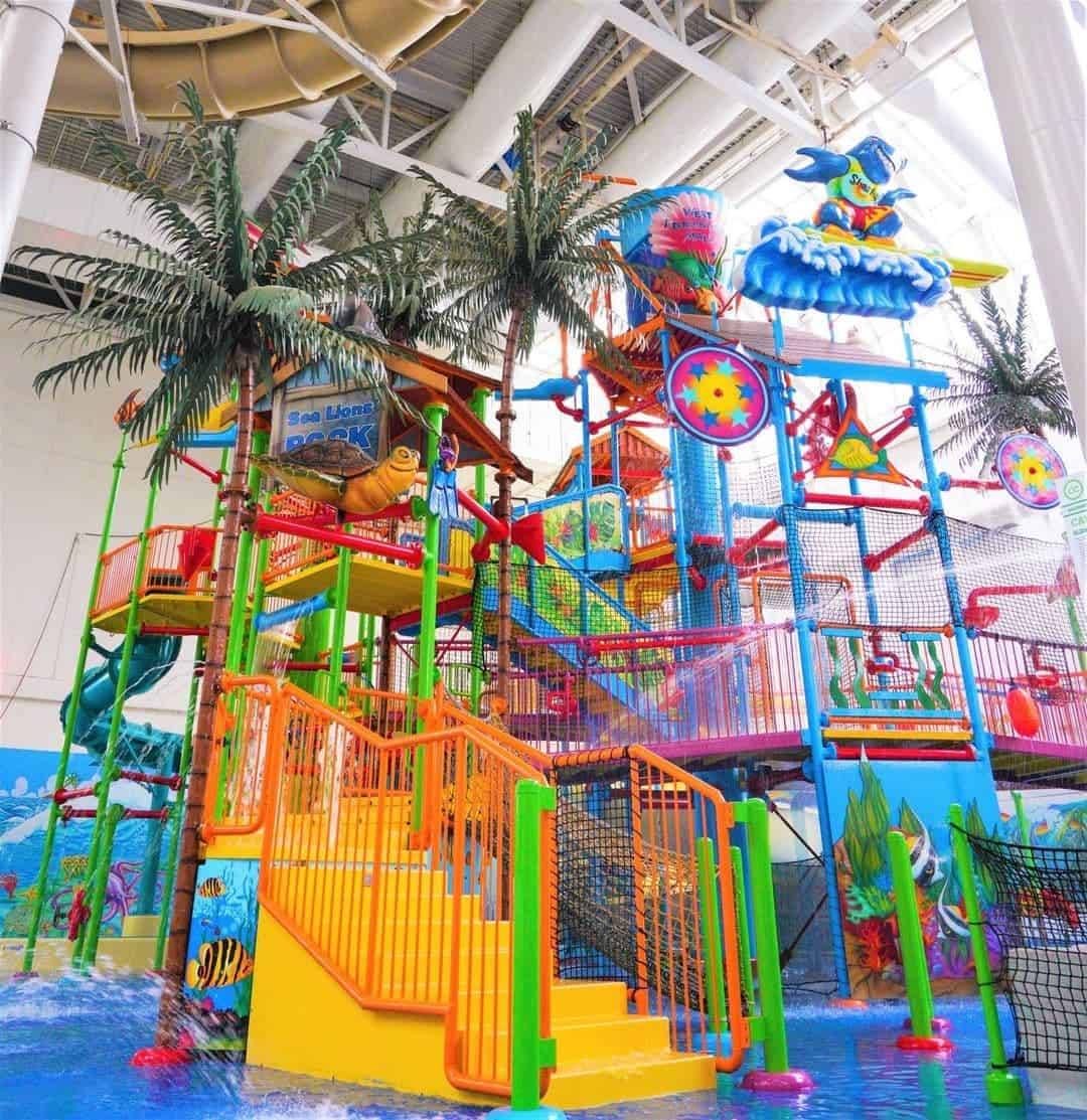 World Waterpark is one of the largest indoor waterparks, but not the biggest. At 225,000 sqft, it is a waterpark enthusiast’s dream with 17 slides, three pools, a large wave pool, a lazy river, and tons of rides, splash areas, and activities for little ones.